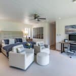 - Bedroom 3 – King bed with office space and a hanging closet as well as a closet with drawers