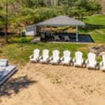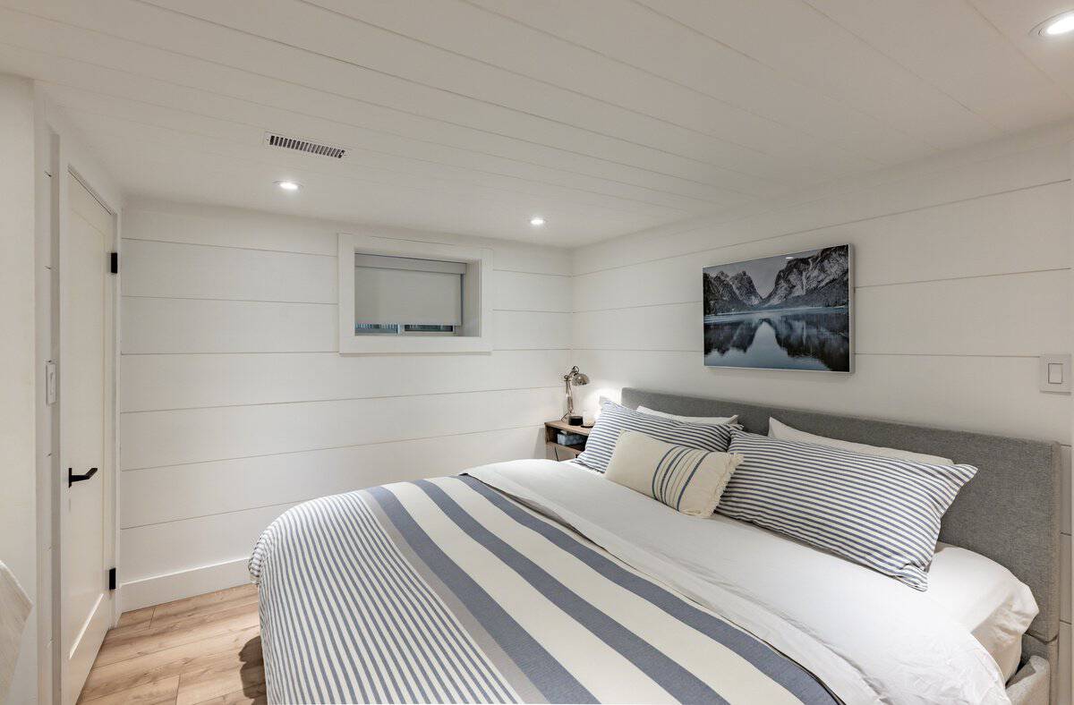 BAREFOOT BAY This stunning 4-bedroom, 4-bath cottage offers luxurious comfort with each room featuring an office desk and a king bed, including two main floor primary bedrooms with ensuites and walkouts. The fully gated back deck provides ample outdoor seating and shade umbrellas, perfect for relaxing or entertaining, while the landscaped level land leads to a cabana with an outdoor kitchen, a bunkie featuring another King room with powder room, a hot tub, and access to the beach. Guests can enjoy a variety of water toys, water volleyball, gym equipment in the boathouse and bicycles for outdoor adventures, making it an ideal retreat for relaxation and fun.