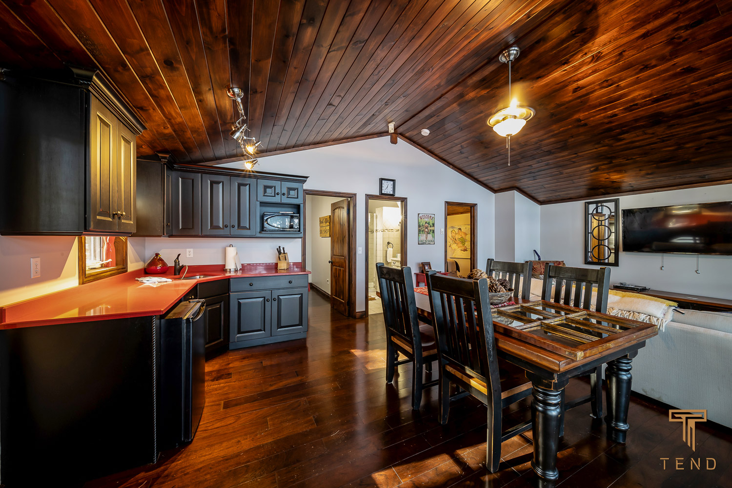 Boathouse with upper seating and TV