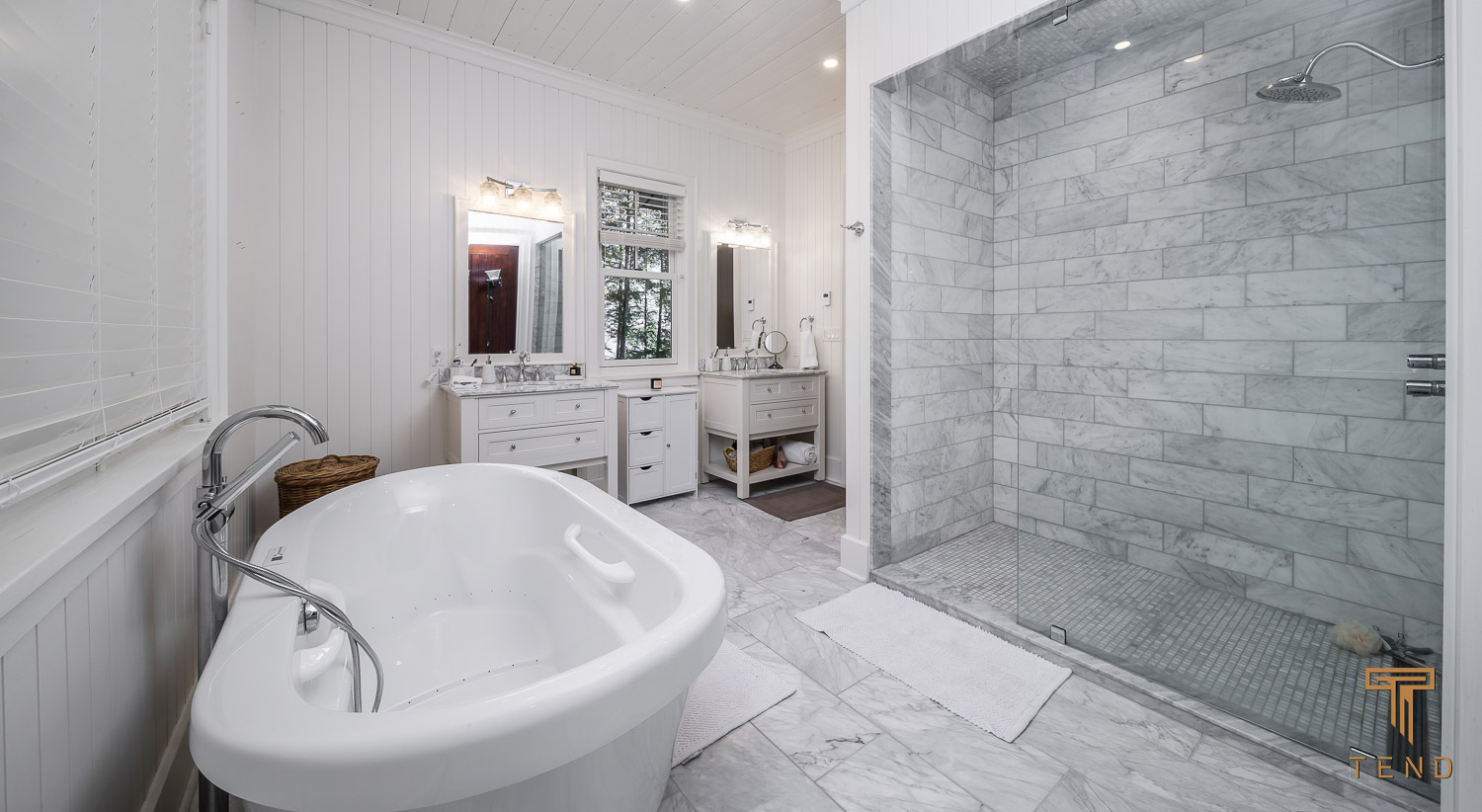 Bathroom 1 – 4-piece ensuite with double sinks and stand-alone shower and soaker tub