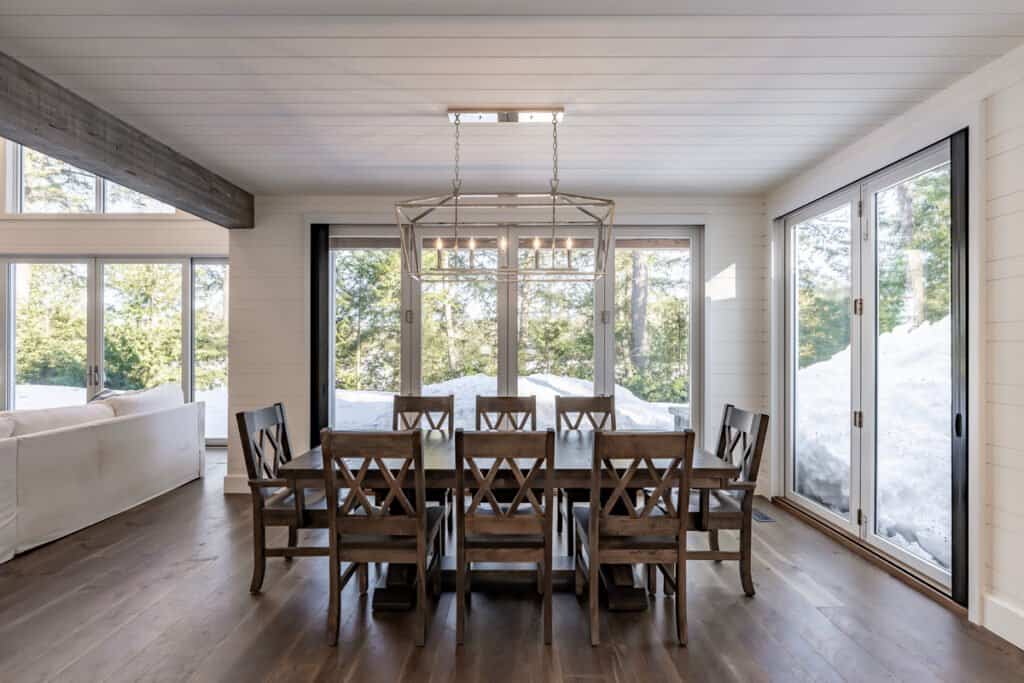 Open-concept dining room with seating for 10+ with two bi-fold glass doors, that offer the complete outdoor dining experience!