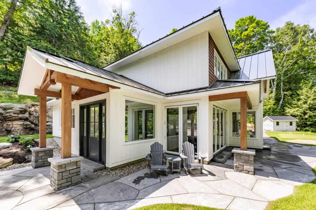 BENTWOOD BEACH – Beautifully landscaped property featuring meticulous landscaping adorned with perennial gardens. A mini putting green is featured in the “back-yard”. Granite stone steps lead down to the waterfront where you can launch your watertoys for afternoon paddle on the lake. A pathway to the right runs parallel to the shoreline and leads you to the gorgeous 2 level sandy beachfront.