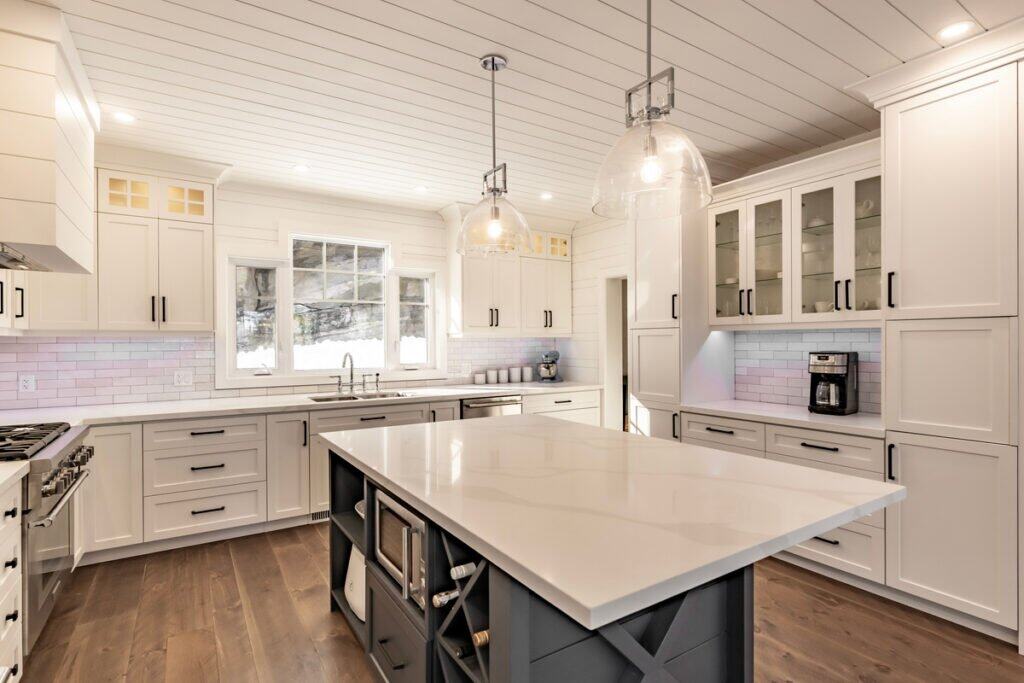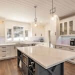 Beautiful kitchen boasting Thermador appliances, and island with bar stool seating and a walk-in pantry.