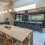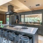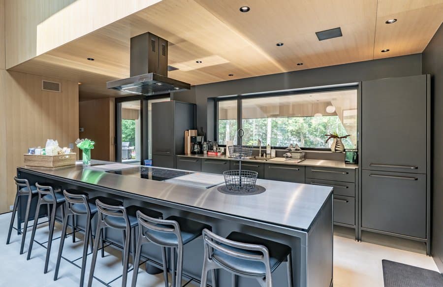 State-of-the-art kitchen boasting an induction stove top, 2 dishwashers, 2 skinny fridges (one has a small freezer drawer). A beautiful island features a Miele oven and Miele convection microwave with 6 bar stools.