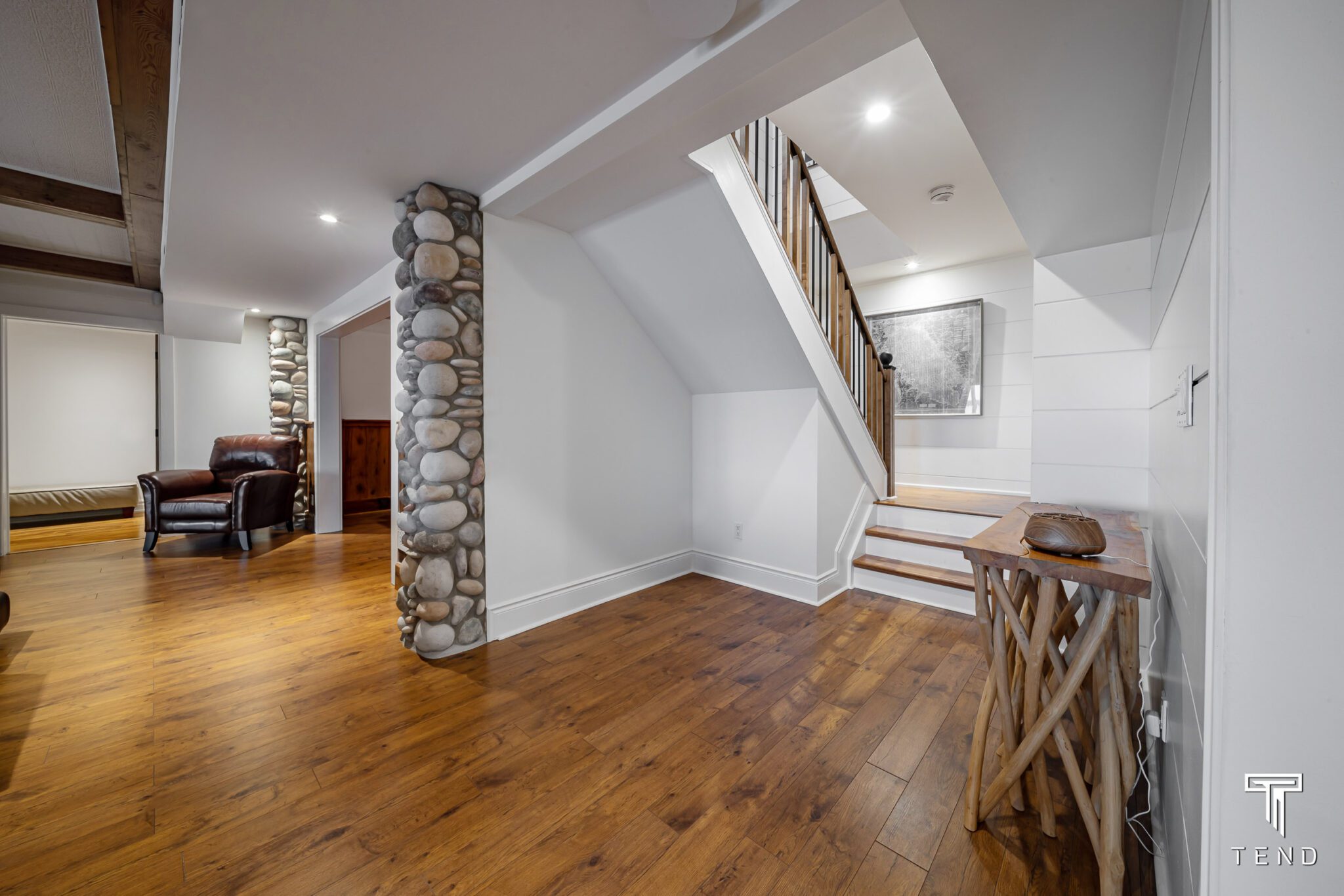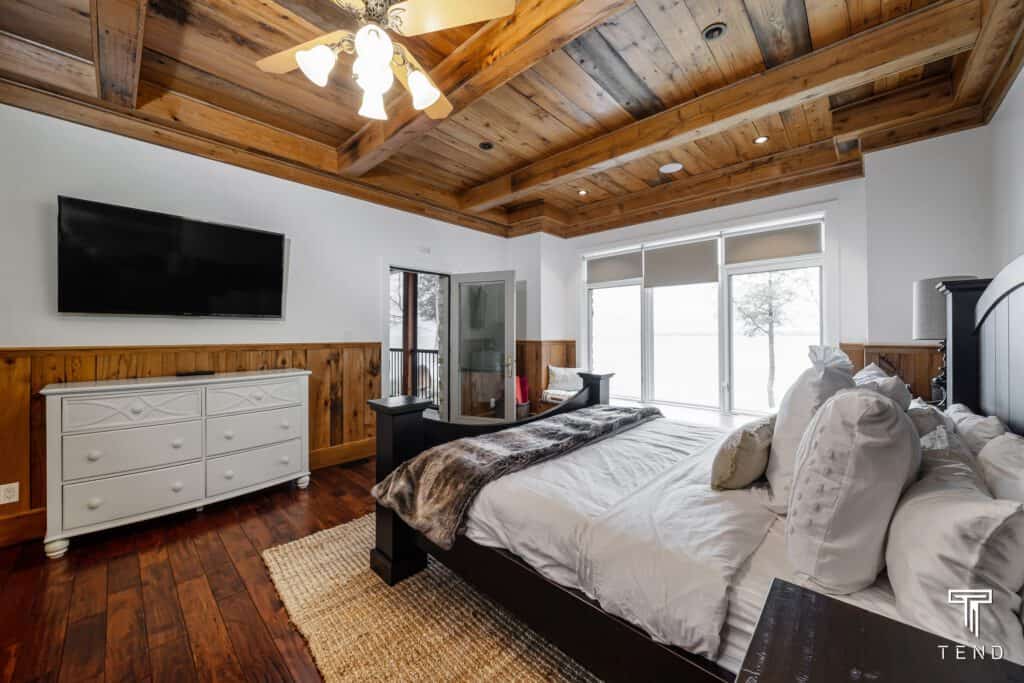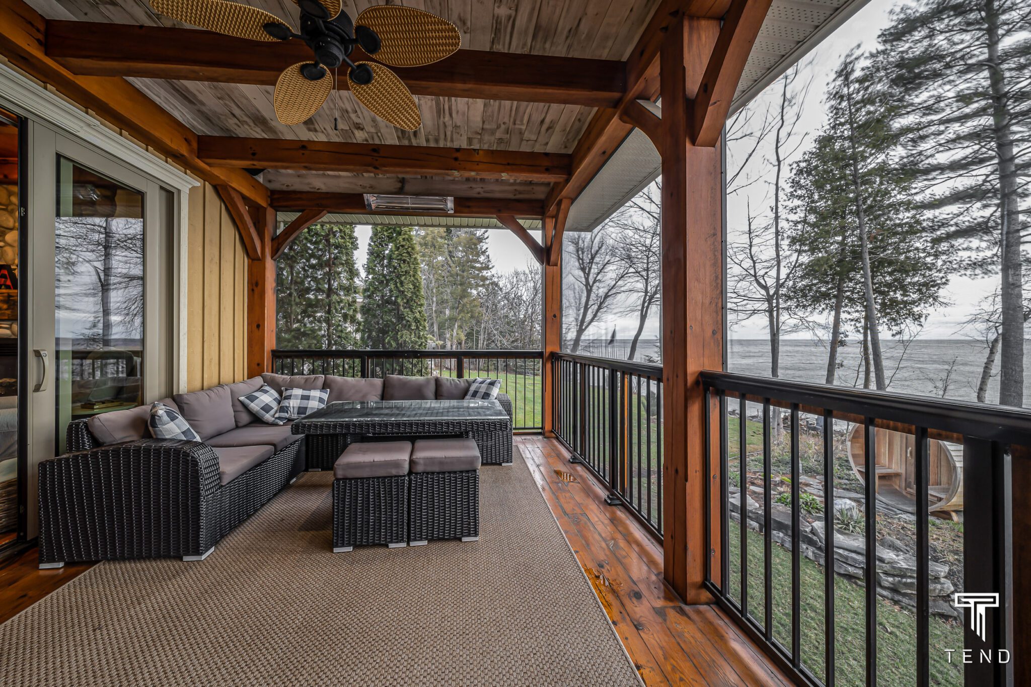 Greenwood Lakehouse is filled with a great mix of modern upgrades, and great character throughout. This large cottage has high ceilings, large windows and great living and dining areas perfect for family and friend gatherings and getaways. This property has 2 screened-in porches, one with a couch and a small TV and the second elevated patio overlooking the lake. The walkout lower level reaches the large stone patio which you can follow down to a large barrel sauna with glass windows overlooking the water, perfect for winter days and summer evenings. The large hot tub, multiple gas fireplaces, and fire pit with 12 Muskoka chairs make for the perfect end to the evening all year round. There is no shortage of activities for families and children including a pool table, foosball, and bubble hockey.