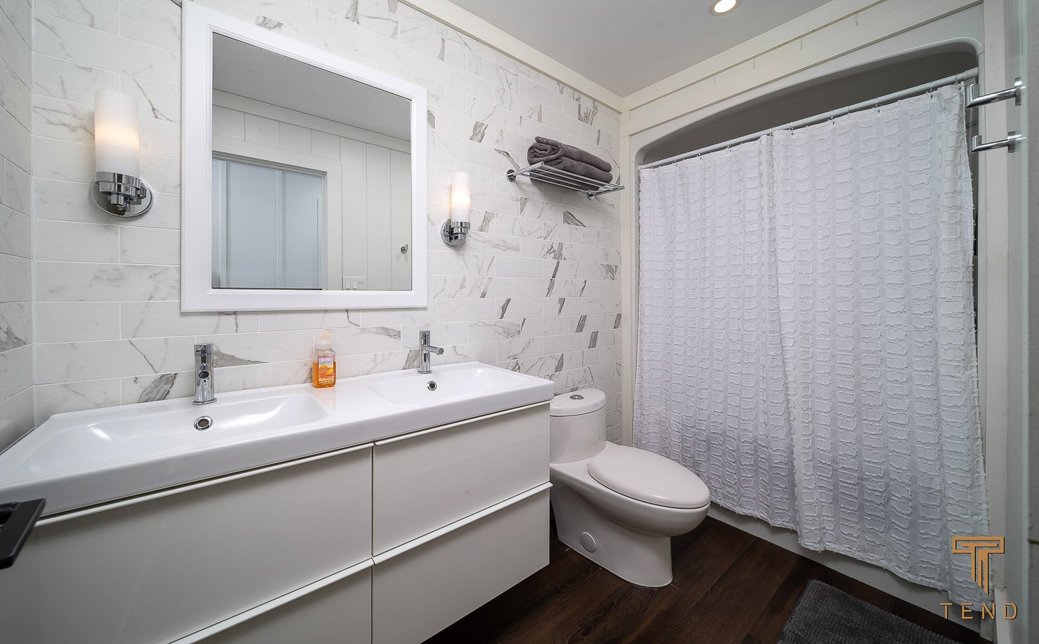 Bathroom 2- 3 piece, with shower/tub combo and double sink