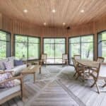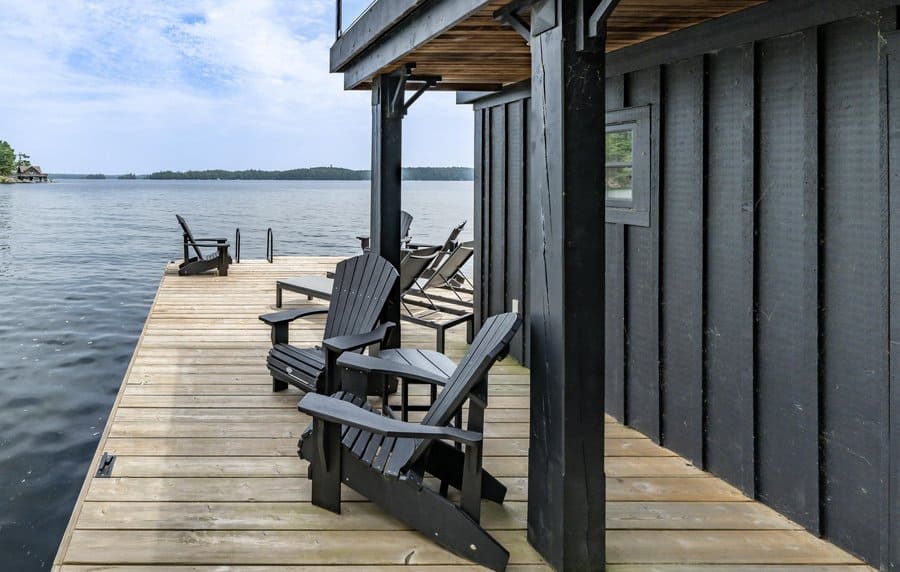 Framed by towering pines and meandering muskoka granite rock, Muskoka Funhouse sits on 265ft of Lake Joseph frontage. Enjoy soaking in the views from the oversized veranda facing the lake. Descend down to the boathouse where crystal clear water laps against the shores – the perfect white noise for a nap on the lounge chairs. An umbrella offers a retreat from the sun, where you can enjoy watching boats dot the horizon from the Muskoka chairs. As the sun begins to set make your way back to the Muskoka Room where you can enjoy a glass of vino as boathouse lights begin to illuminate the lake.