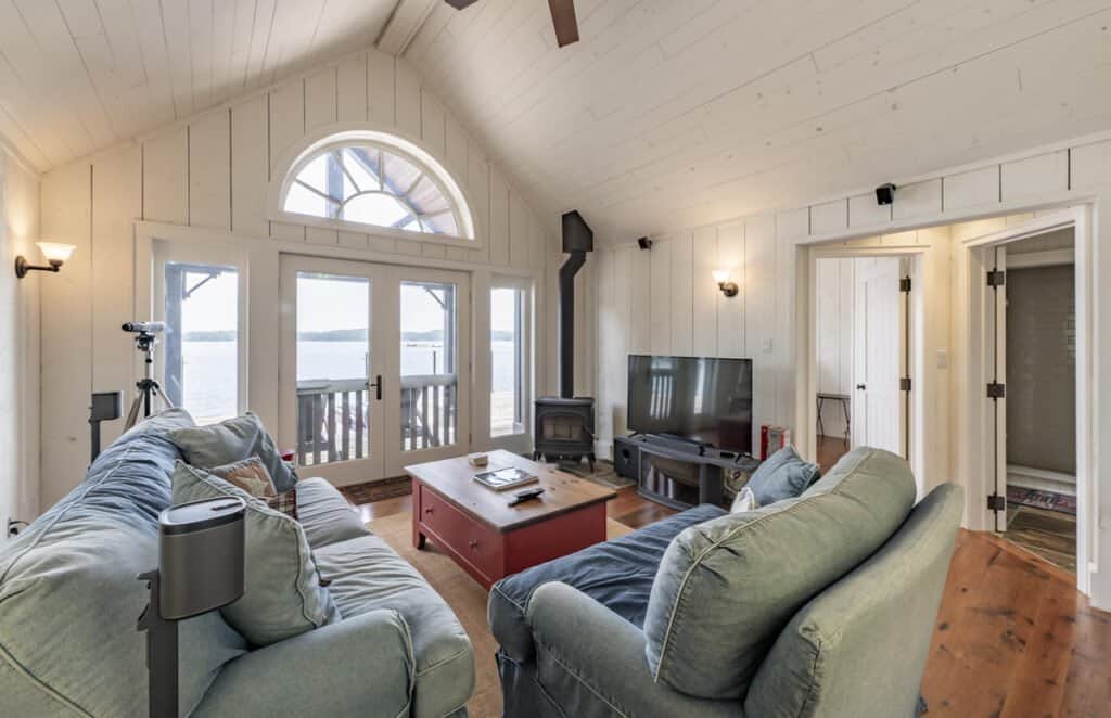 A beautiful space on the water, featuring a kitchenette (microwave, DW, fridge/freezer, Keurig, toaster and sink) dining table and living area with a TV and wood‑burning fireplace!