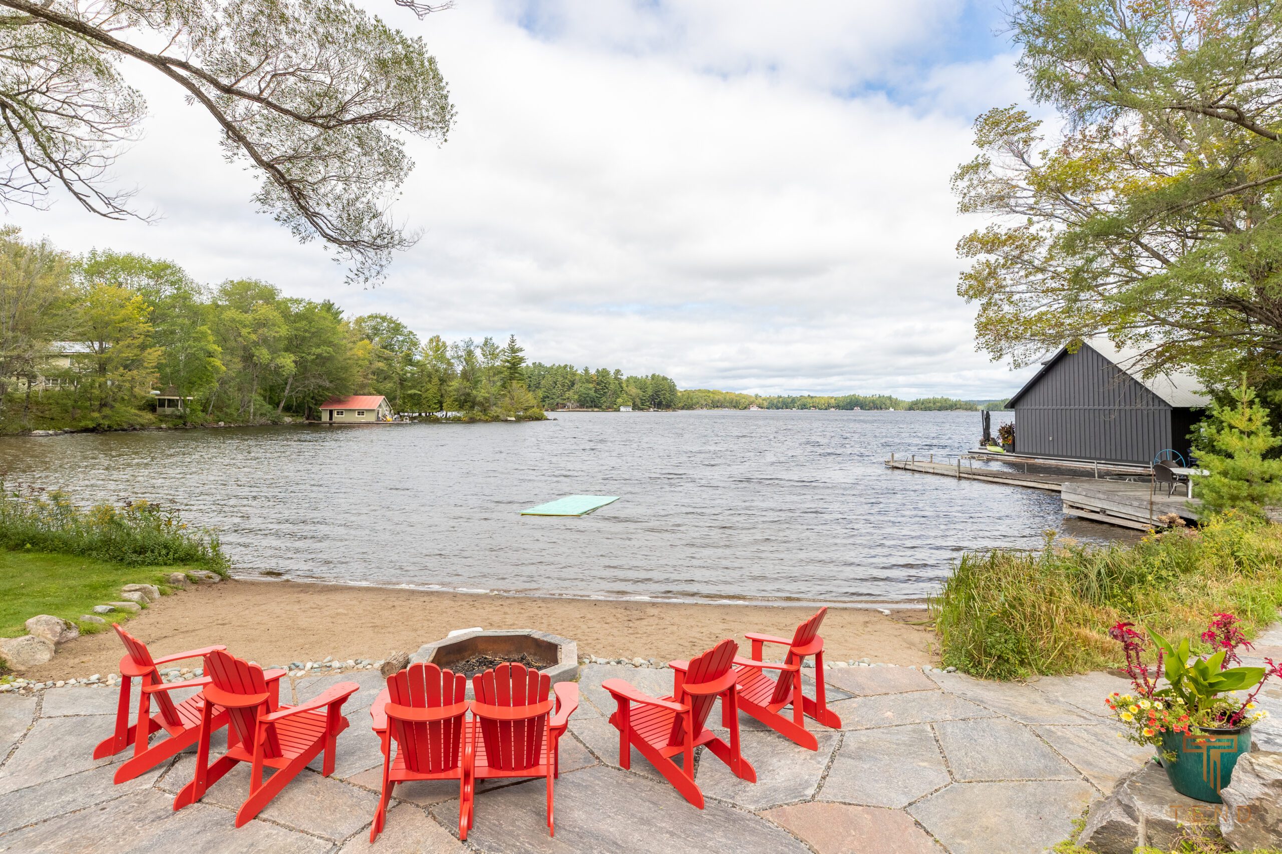Located on central Lake Muskoka, Driftscape offers a beautiful property with lots of flat grass area perfect for games and activities and a sloping beach for swimming. The Eastern exposure gives amazing sunrises.