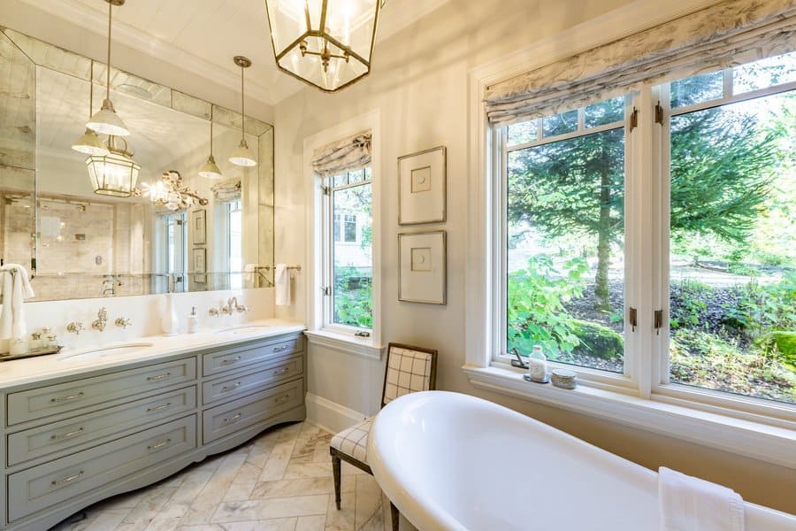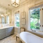 - Bathroom 3 – 4 piece bath with a double vanity, tub and walk‑in shower adorned with mosaic tile