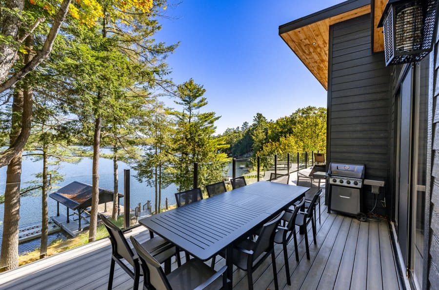PENNEY FOR YOUR THOUGHTS – This gorgeous lakeside cottage provides a perfect blend of modern elegance and comfort, featuring spacious living areas, a well‑equipped kitchen for large gatherings, and a cozy screened Muskoka room for relaxing. The expansive deck with outdoor seating, BBQ, and stunning views enhances outdoor entertaining, while the lower level offers a variety of indoor and outdoor games. The beautifully landscaped granite patio with a firepit creates an inviting outdoor space that leads to the lake, where you can enjoy serene views from the dock and benefit from a covered boat slip for easy access to water activities.