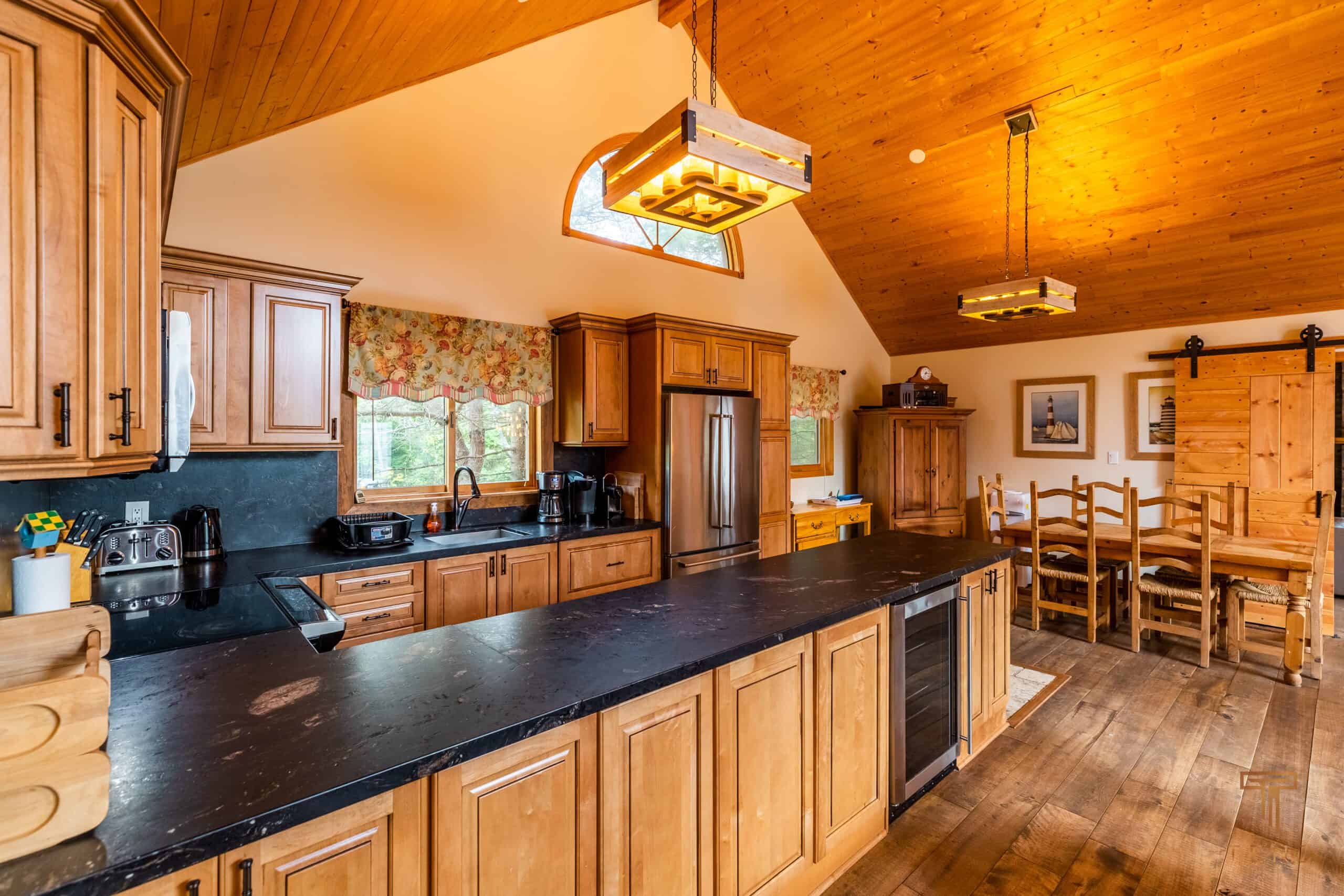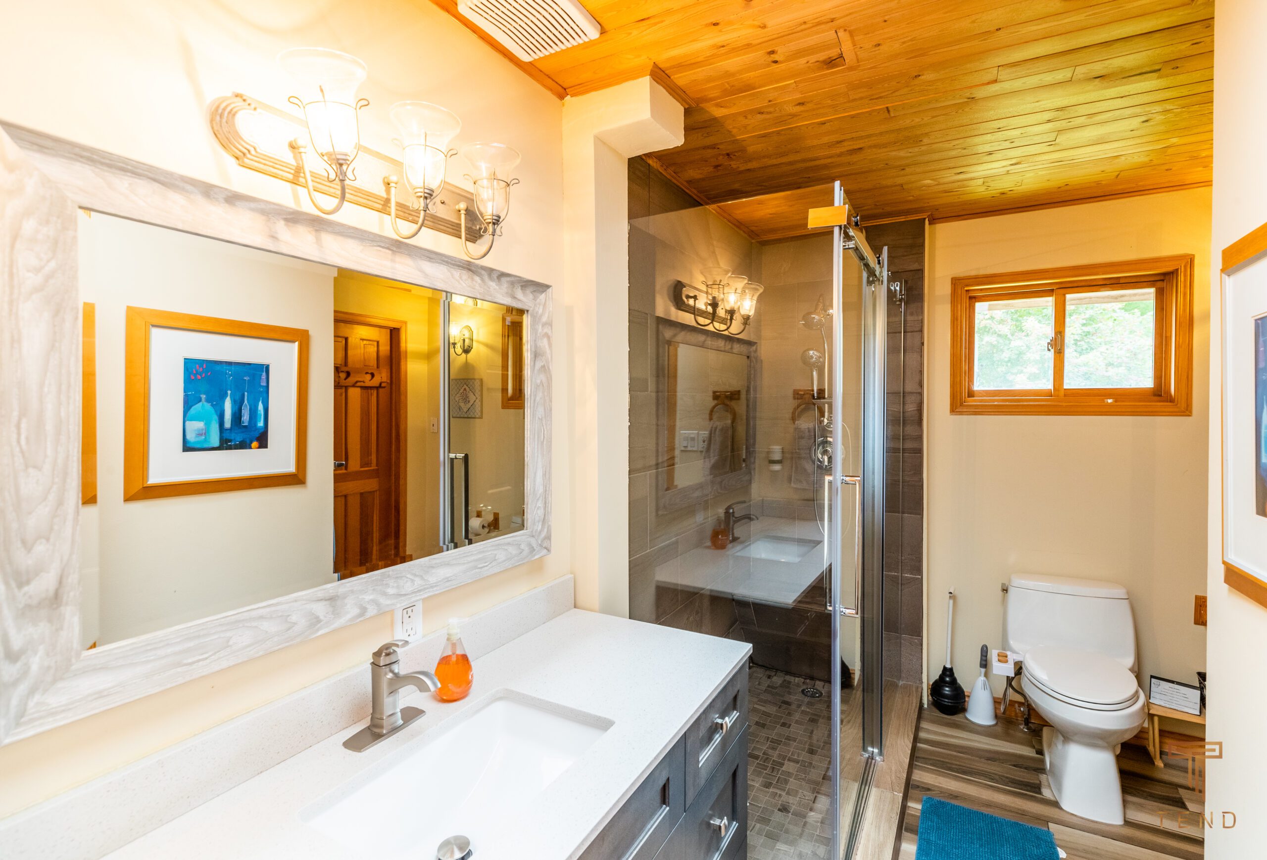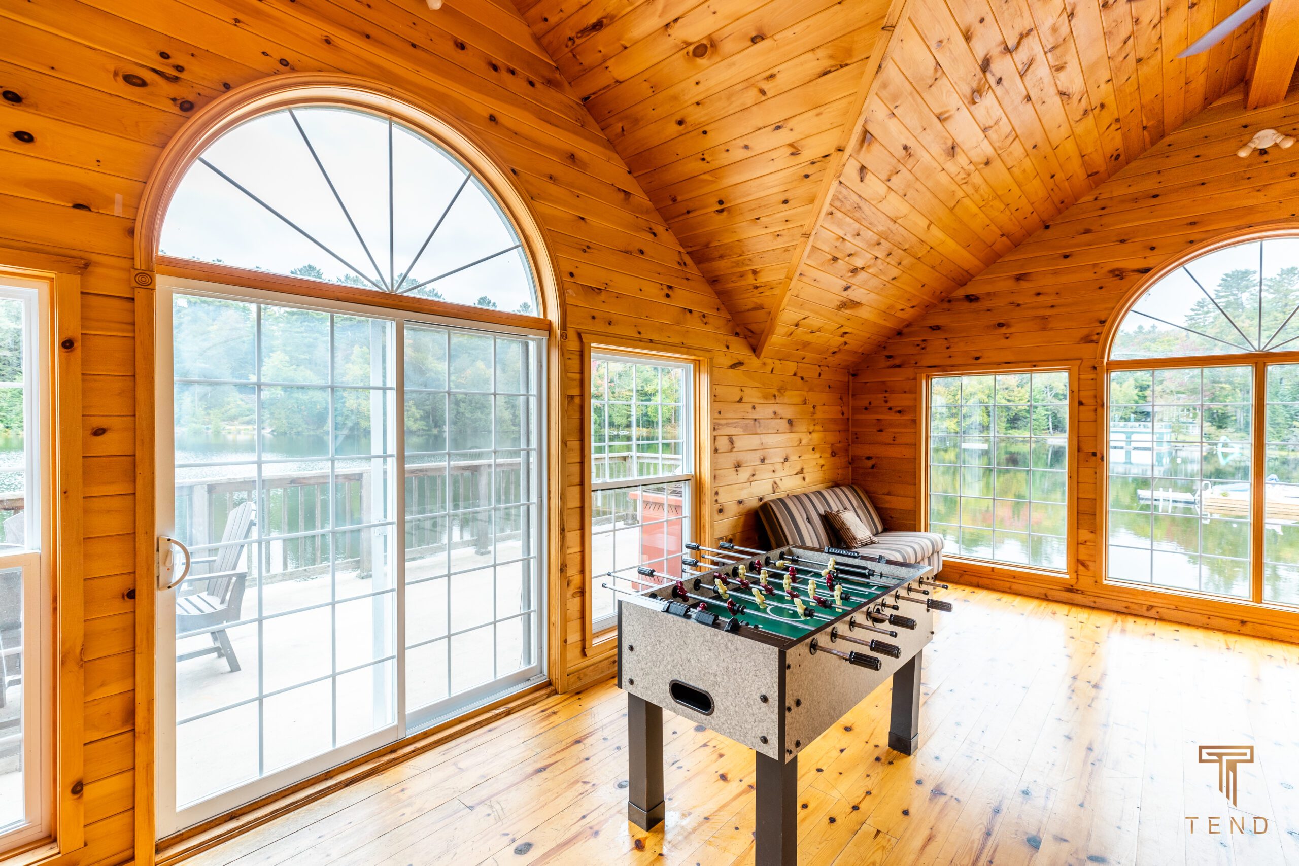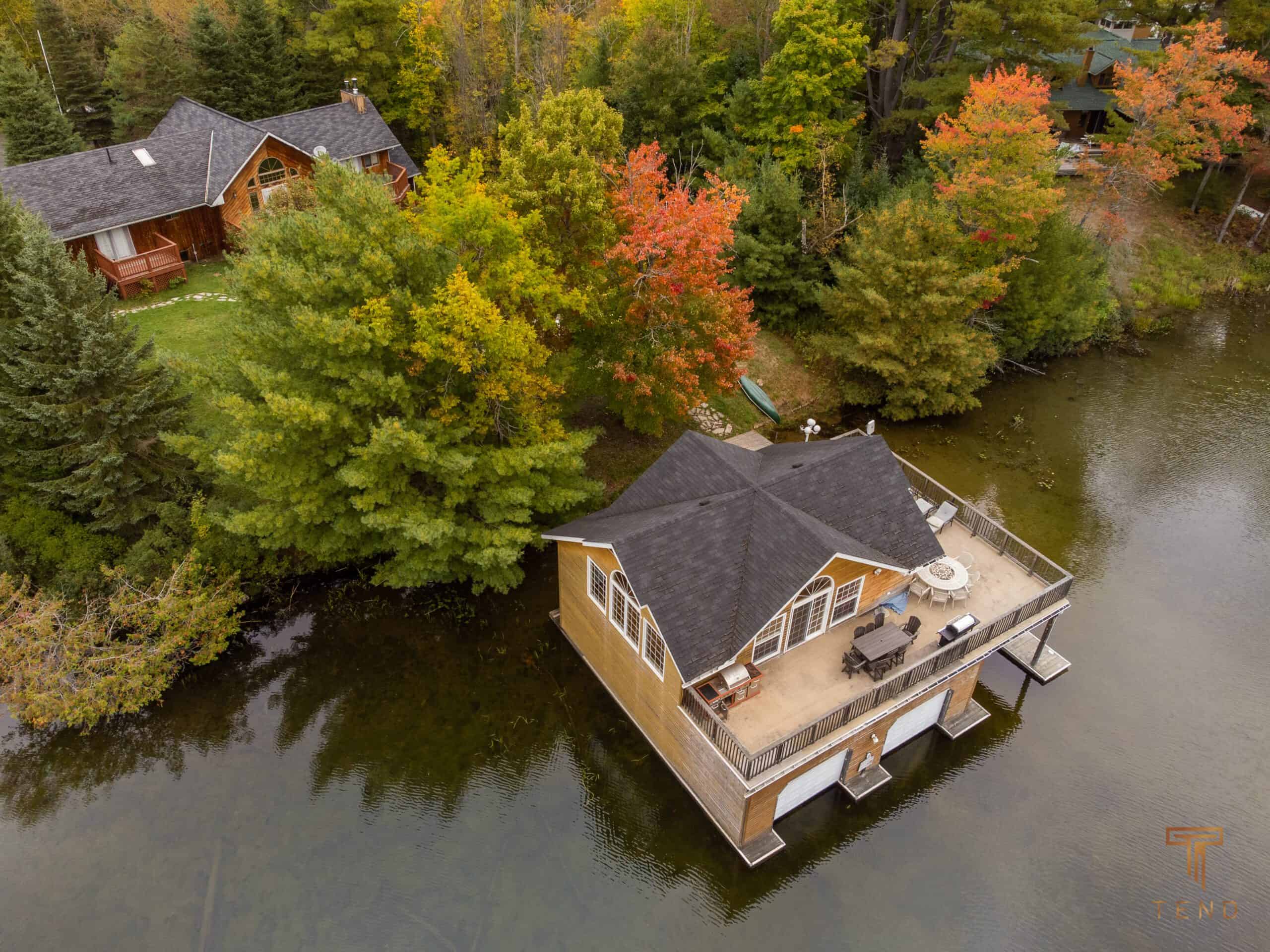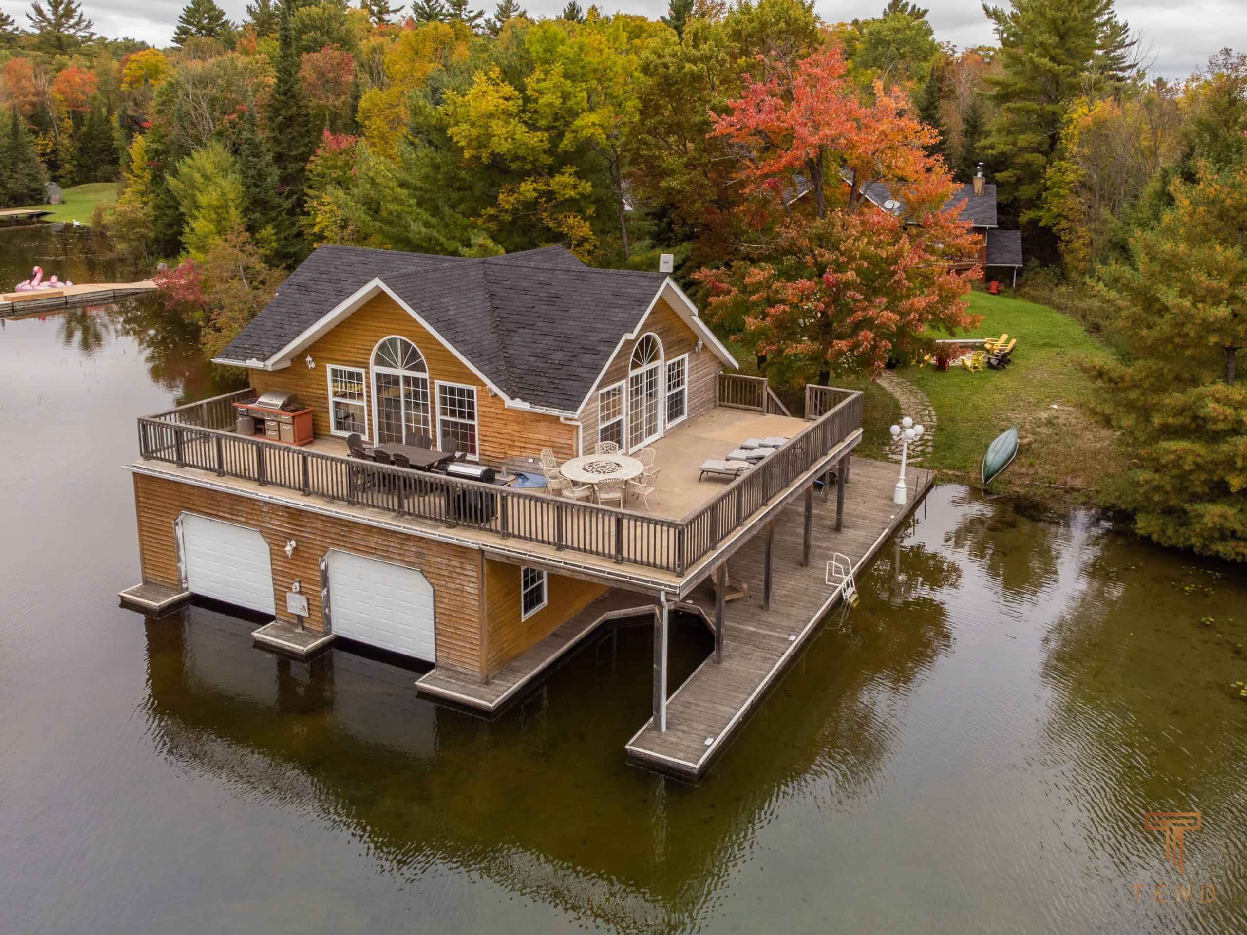 Boat house has 3 boat slips, 2 sundecks and 1000 square foot party room. 2 x BBQ, one on cottage deck and one on boathouse upper sun deck. 2 outdoor dining areas