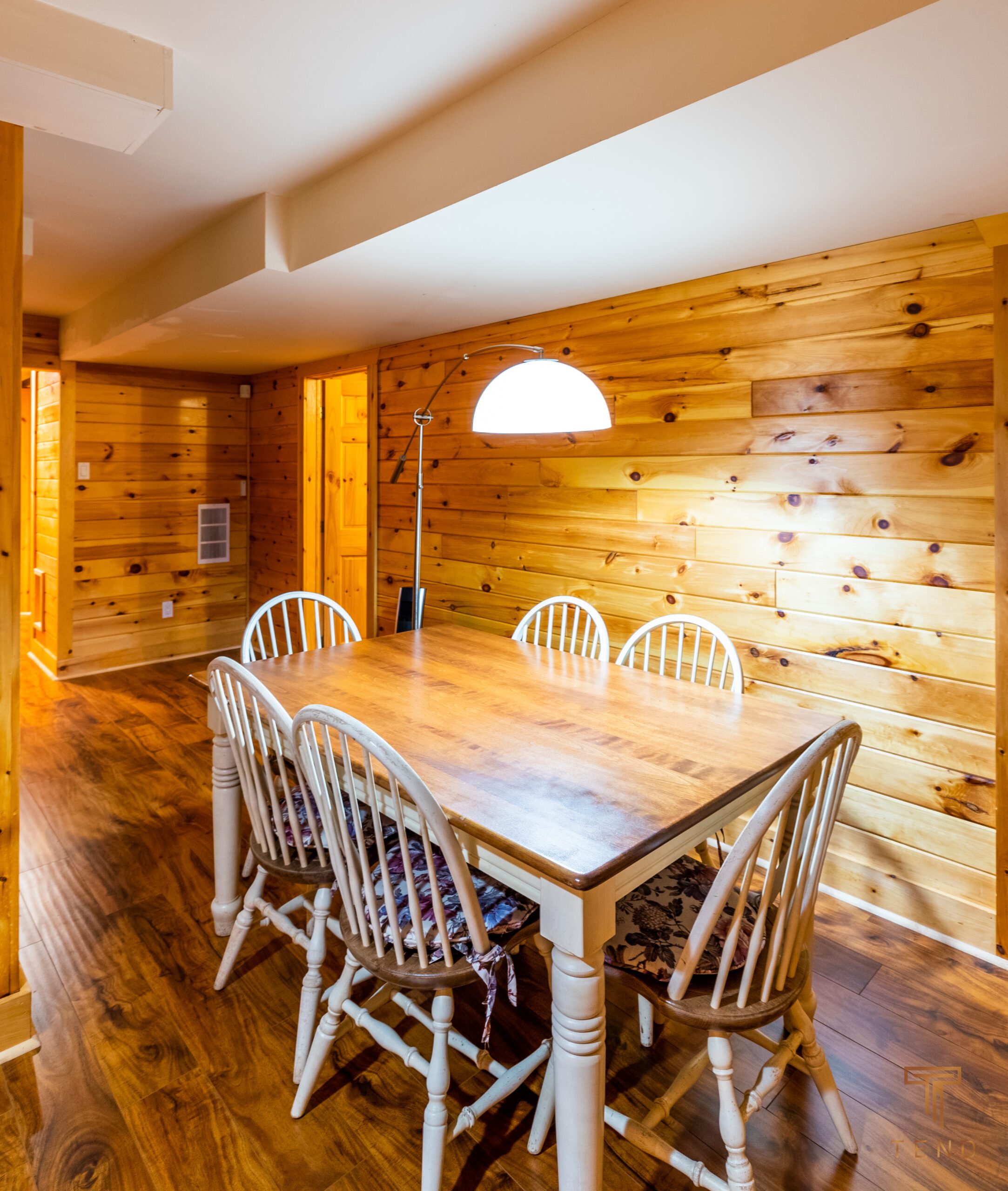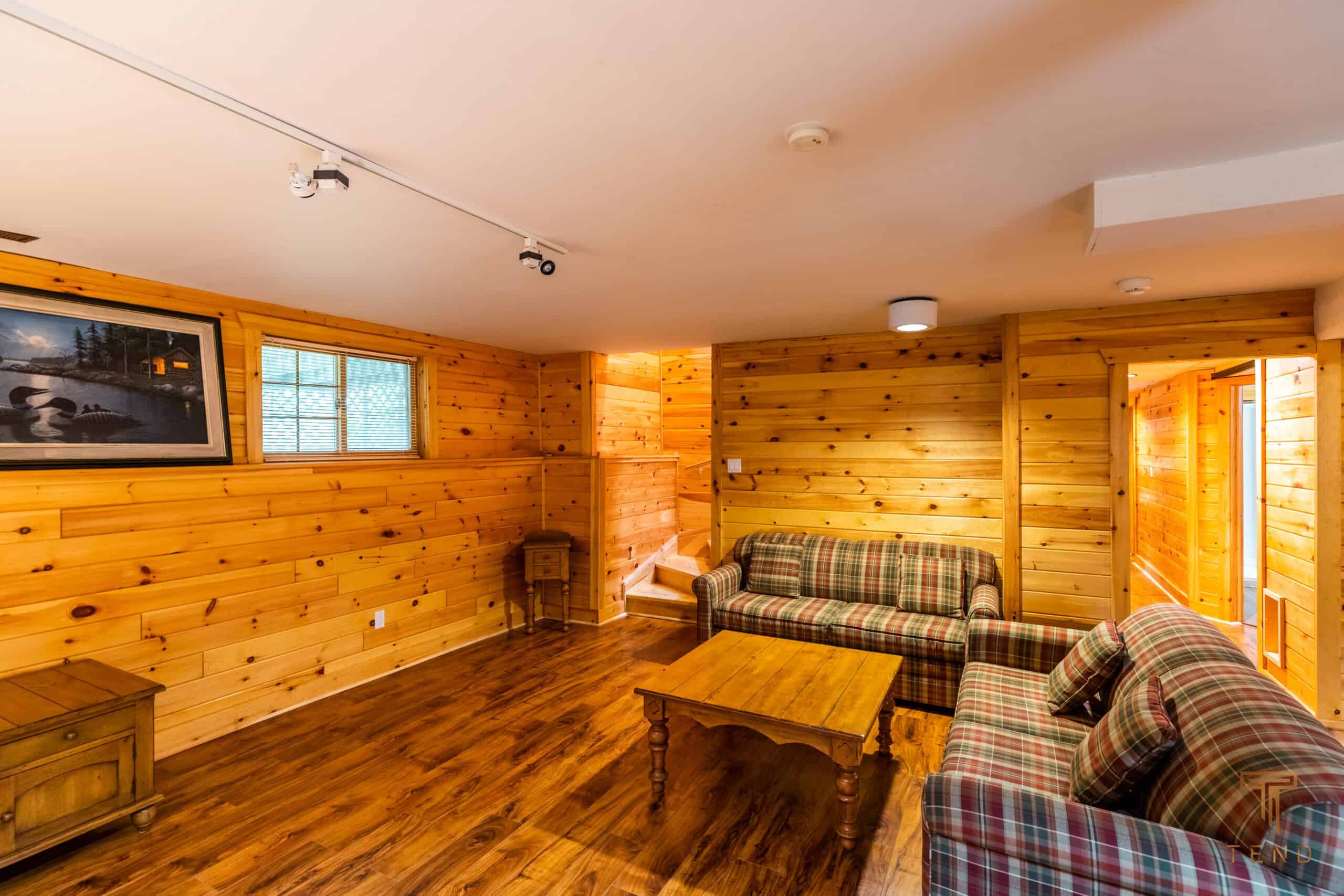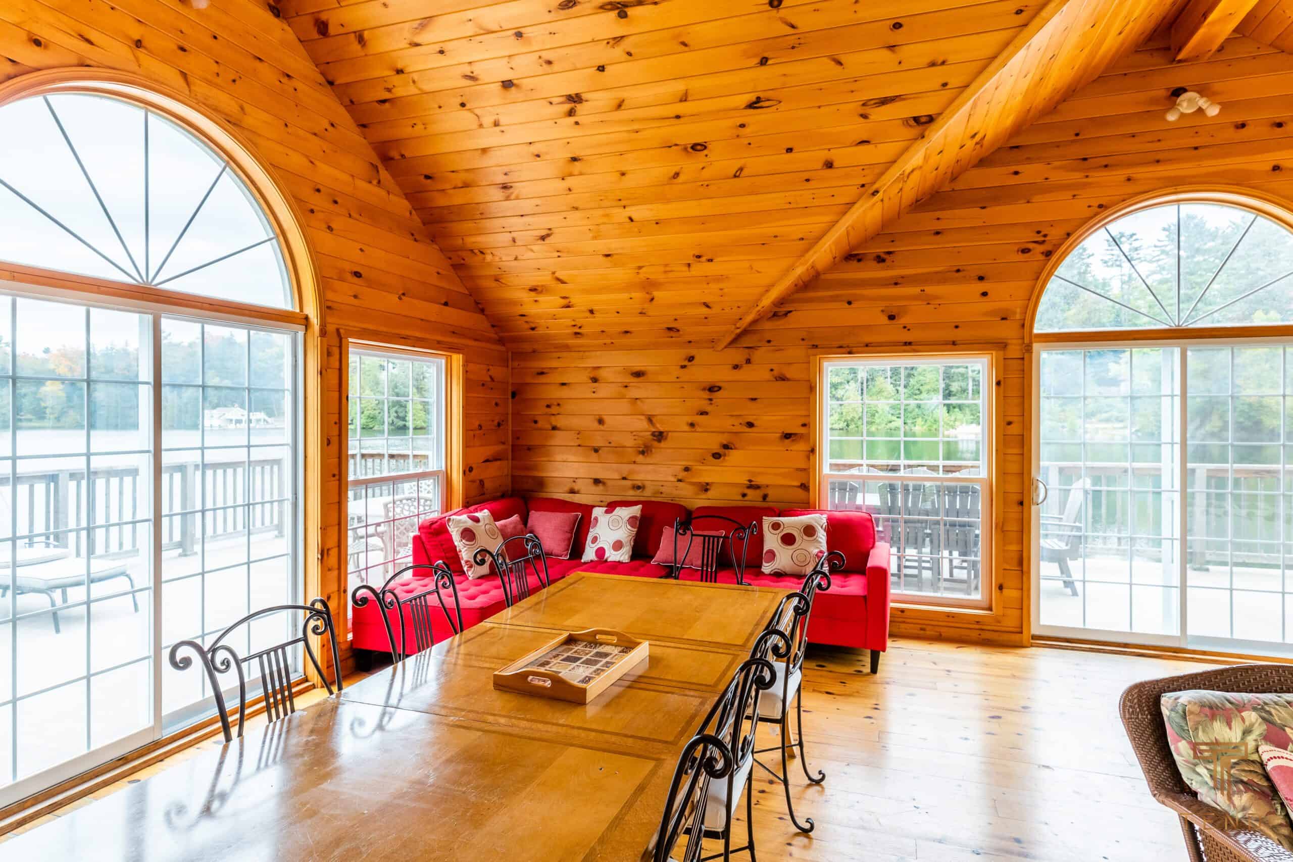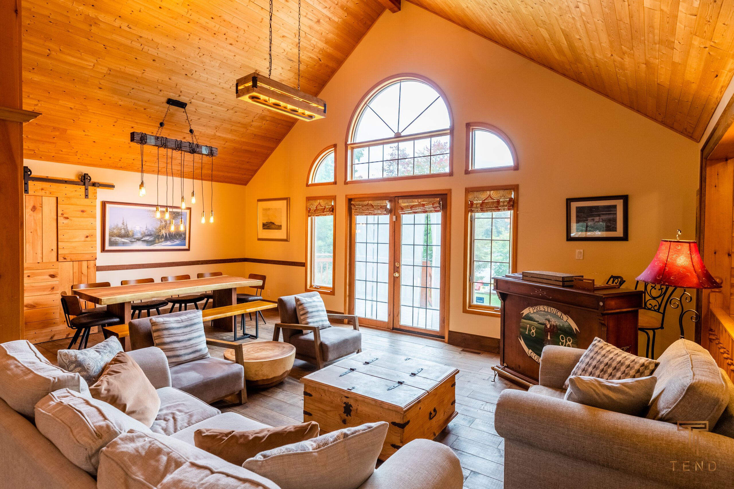 Large open living space, with Living Room and a Family Room, two dining tables. Setup for large families. (Plus additional dining in the Boathouse party room).