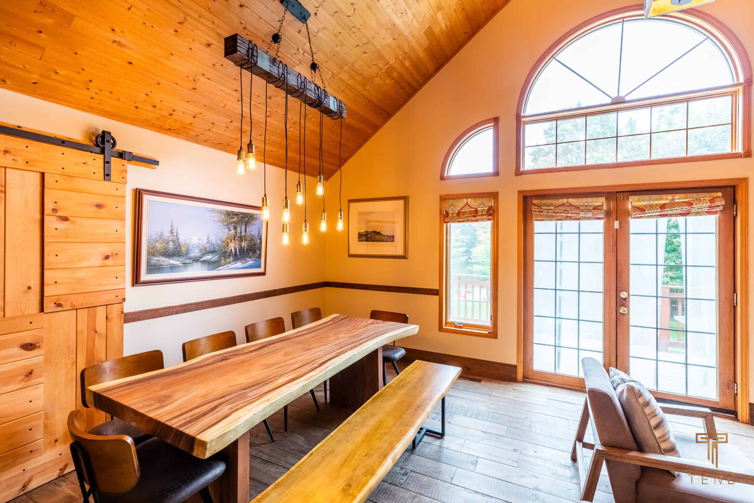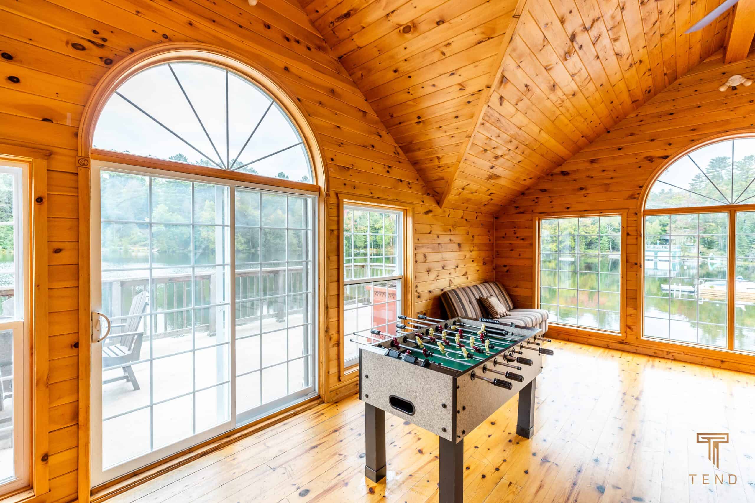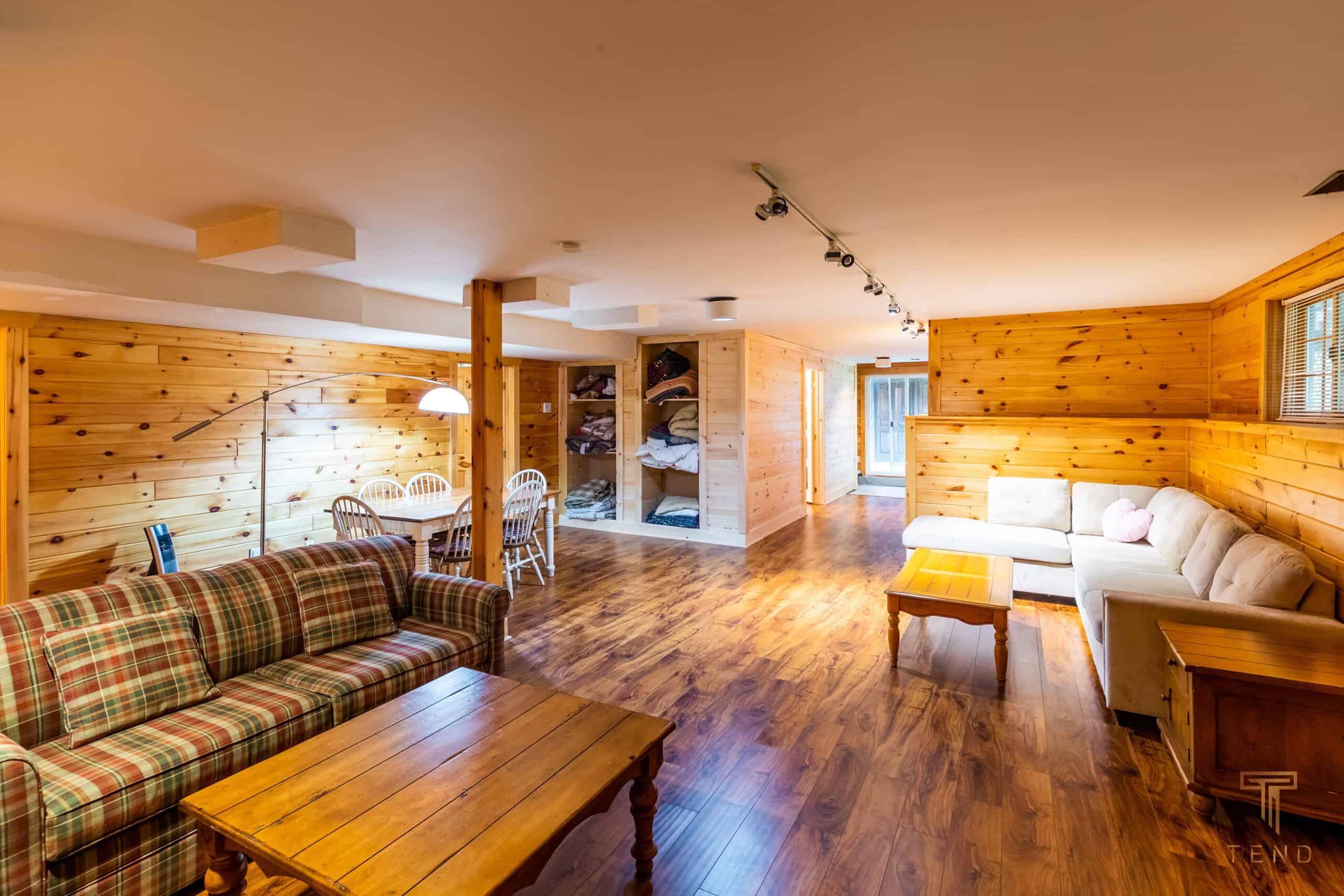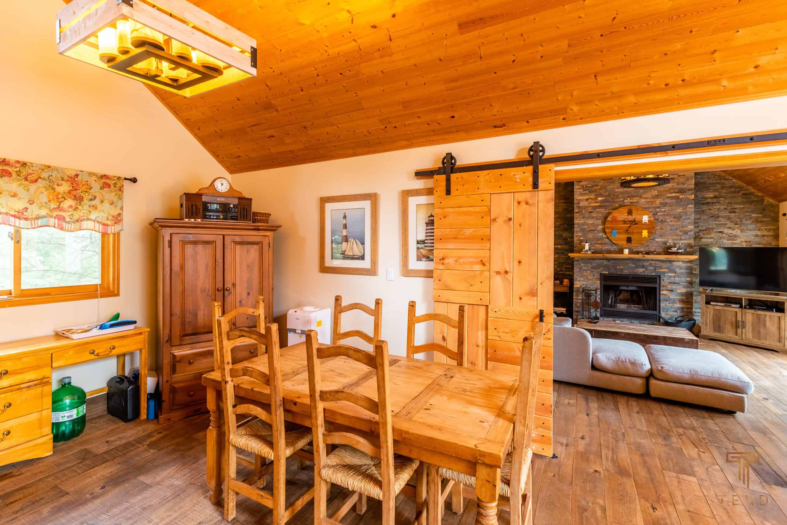 Large open living space, with Living Room and a Family Room, two dining tables. Setup for large families. (Plus additional dining in the Boathouse party room).