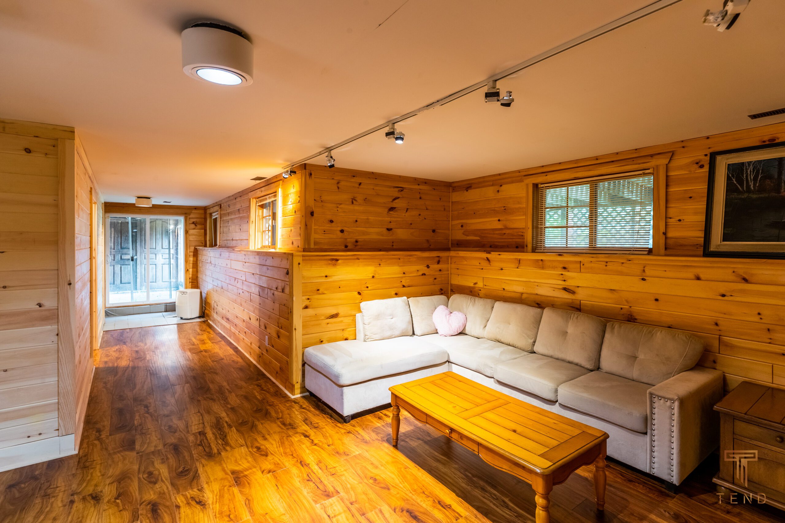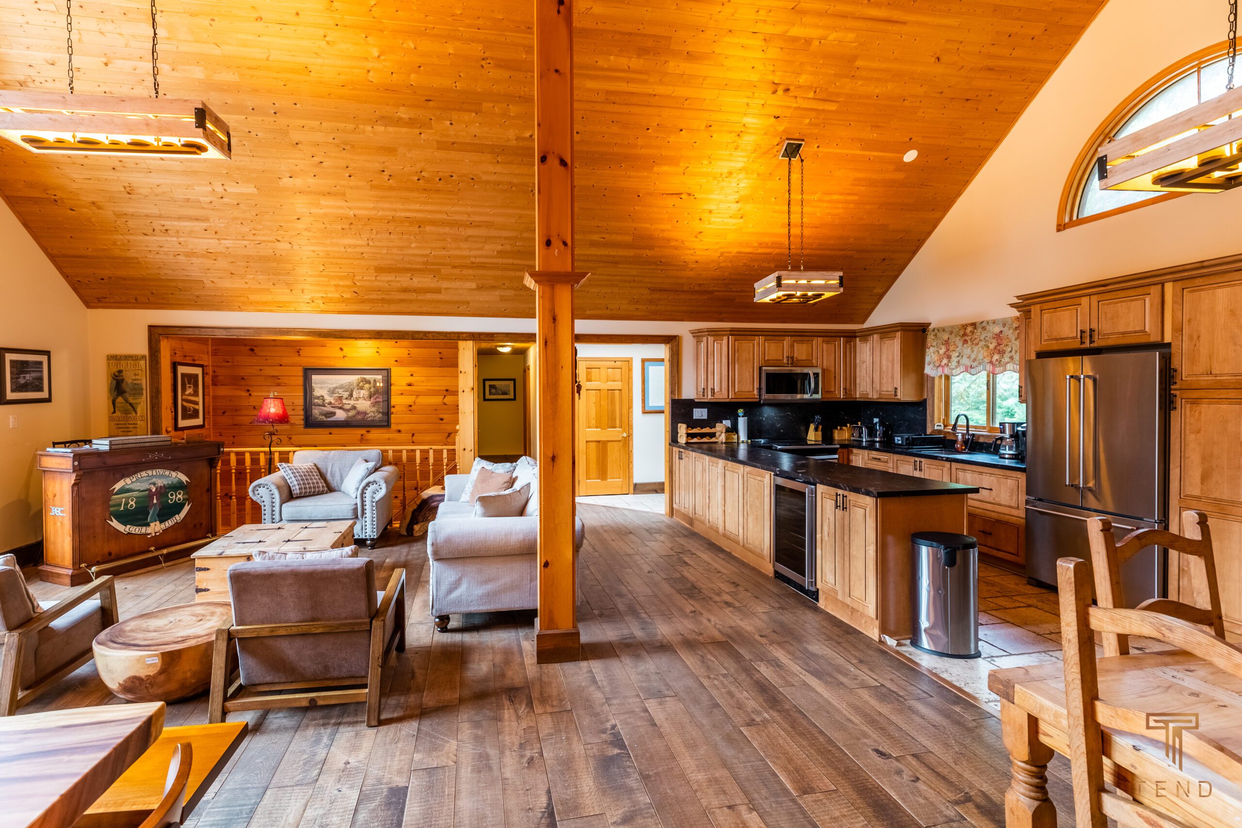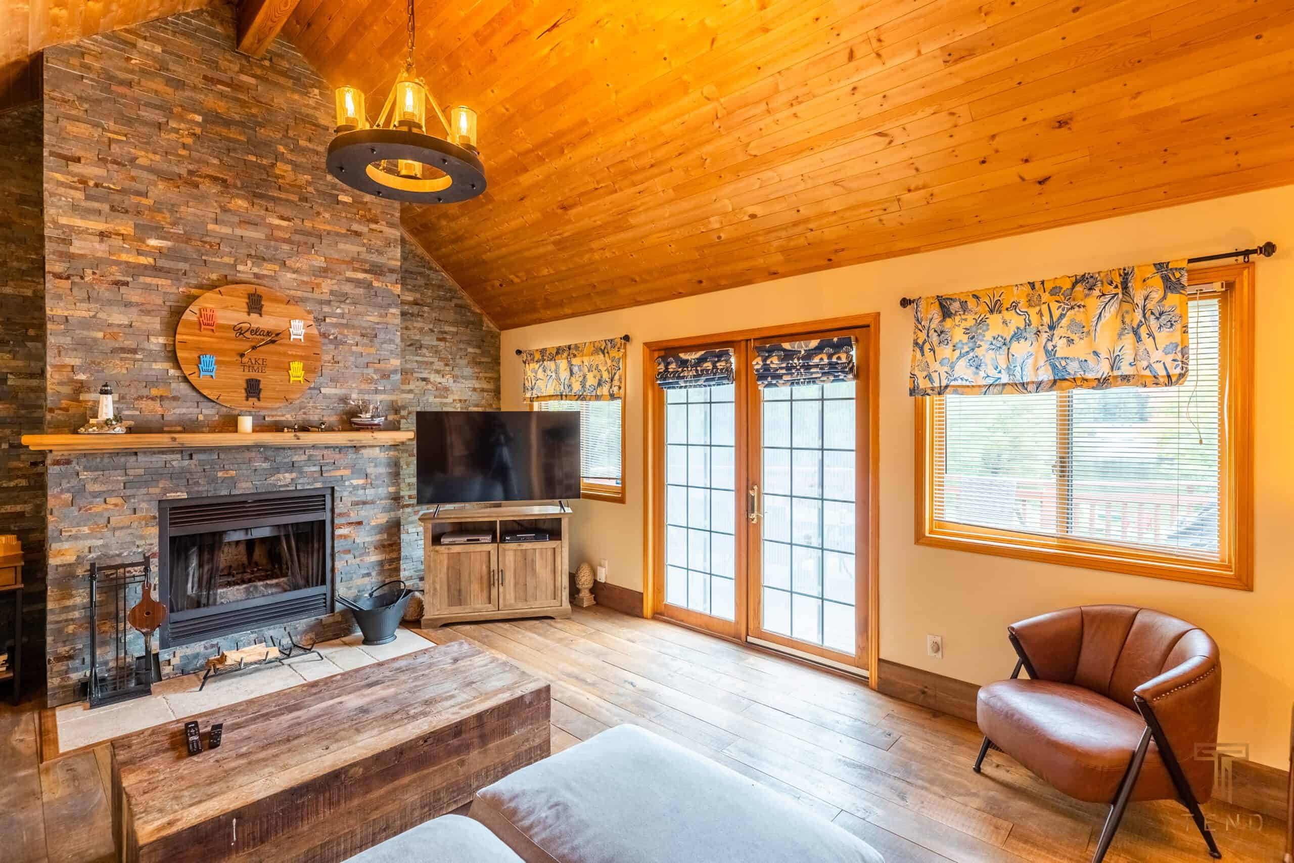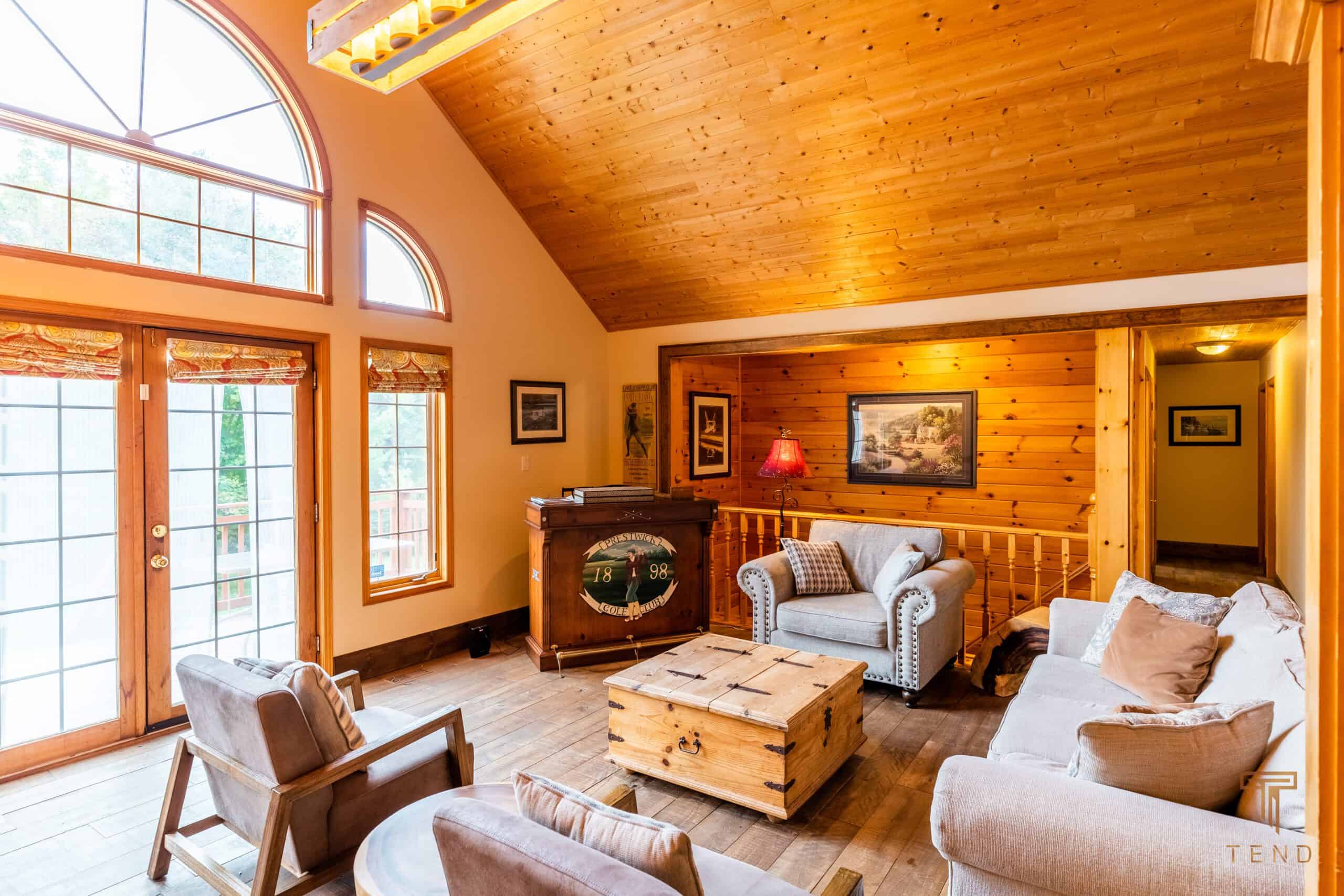 Large open living space, with Living Room and a Family Room, two dining tables. Setup for large families. (Plus additional dining in the Boathouse party room).