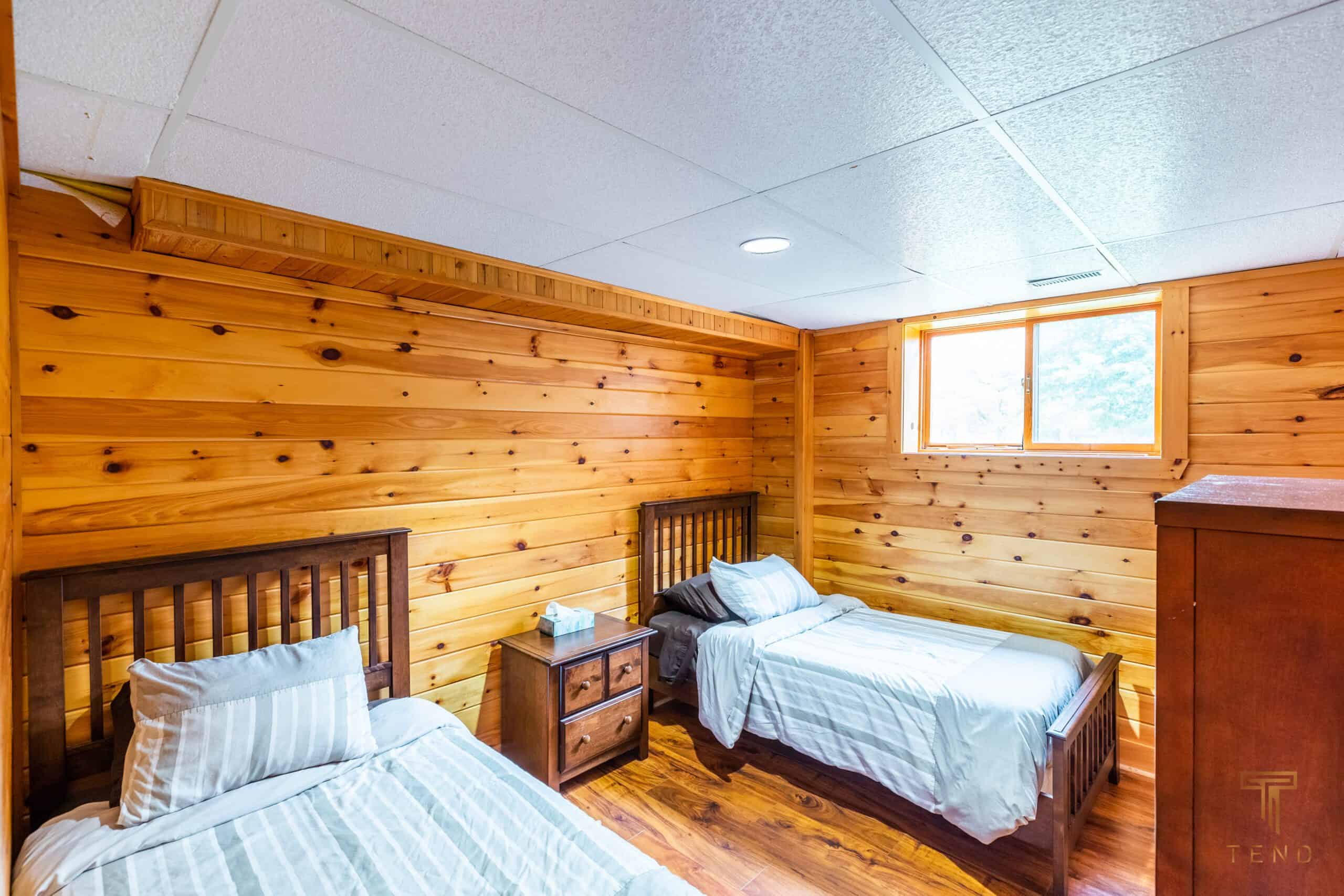 An upscale true Canadian Cottage. North shores of Lake Joe, on a quiet shallow bay. gorgeous views of lake Joseph. Private setting with a gentle sloping landscape ideal for children.. Ideal for 3 couples with 10+ children.