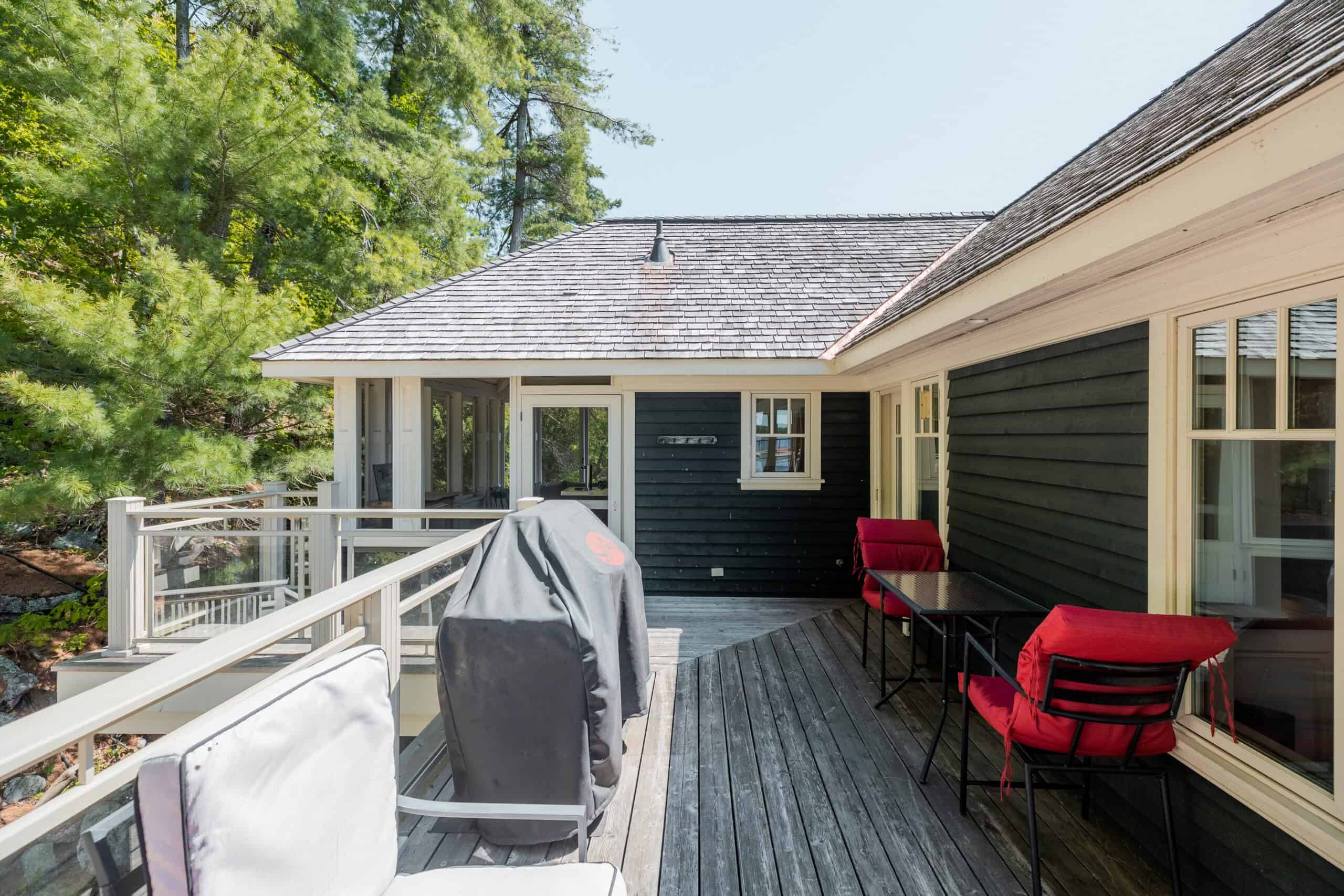 Siesta North is the centrally located, and secluded-feel getaway that you have been waiting for. Tucked back in the forest, with a great elevation of 150ft overlooking Lake Rosseau, Siesta North provides some of the best views of Lake Rosseau and Skeleton Bay from great heights. Entering the main cottage provides breathtaking views with the floor to ceiling windows directly overlooking Lake Rosseau. The newly renovated kitchen has an open concept space, fully equipped for all of your entertaining needs. The large Muskoka room is the most recent addition to the main cottage providing a great second living and dining space. The wrap-around porch provides great views from all angles and a fire pit with Muskoka chairs.