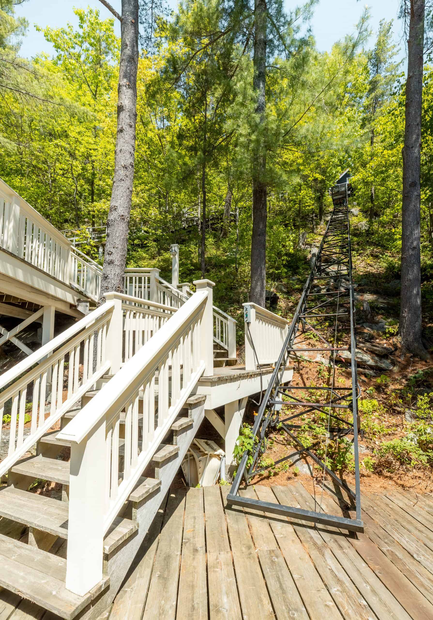 Hop in the trolley inclinator or opt to take the stairs to get down to the large boathouse. The bottom level has 3 boat slips and a bathroom with laundry space. The upper level of the boathouse has a wrap around deck with plenty of space for seating and lounging. There are two bedrooms and a bathroom with a large living and kitchen space. Once you’re down there, you will have everything that you need to enjoy the day at the lakeside.