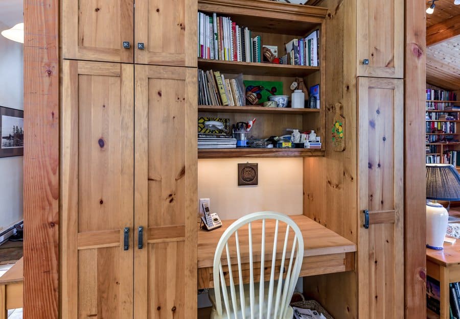 Open to the main kitchen find a beautiful, large, wooden antique dining table that seats 12+. Floor to ceiling, double sided, wood burning, stone fireplace. Enjoy formal dinner parties here or a great time with all of your family in this special space!
