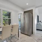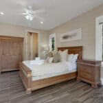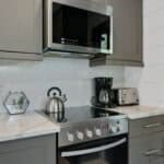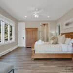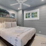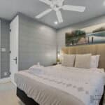 The master bedroom is a spacious loft-style room with ample natural light and a king-size bed. The second bedroom has a cozy queen-size bed, ensuring all guests a comfortable night’s sleep.