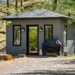 In addition to the main cottage, there is a separate bunkie on the property. This charming space offers an additional queen-size bed and an ensuite bathroom, as well as a private laundry area.