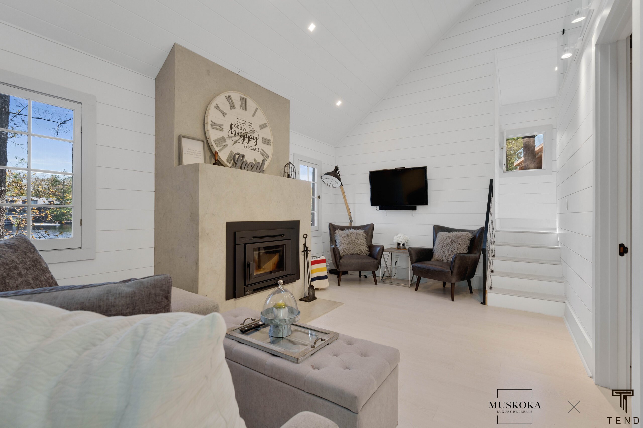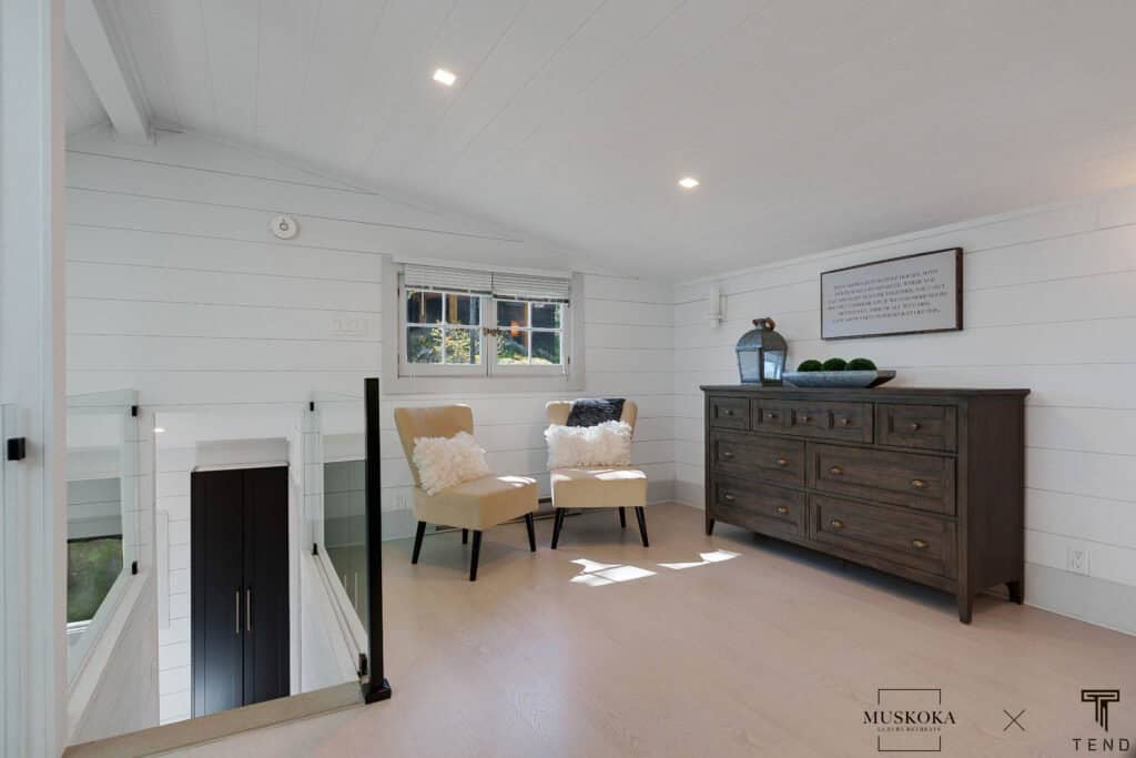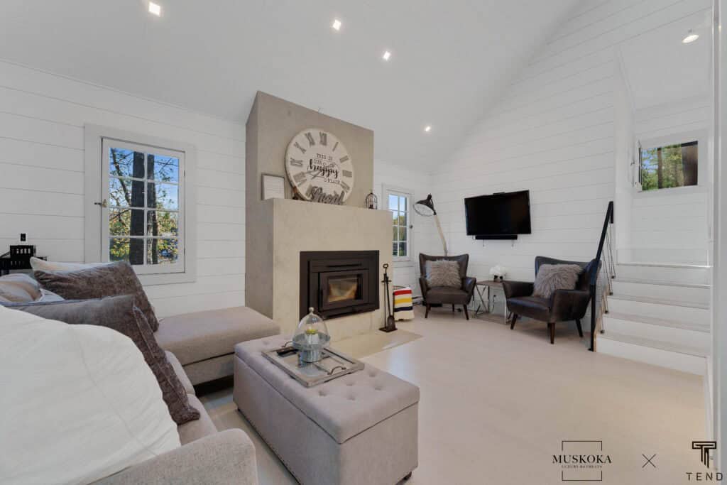 Guests will appreciate the modern and stylish decor throughout the cottage and bunkie, which complements the beautiful natural surroundings. Whether you’re spending your days exploring the lake or simply relaxing on the deck, this modern cottage on Lake Muskoka is the perfect place to unwind and recharge.
