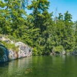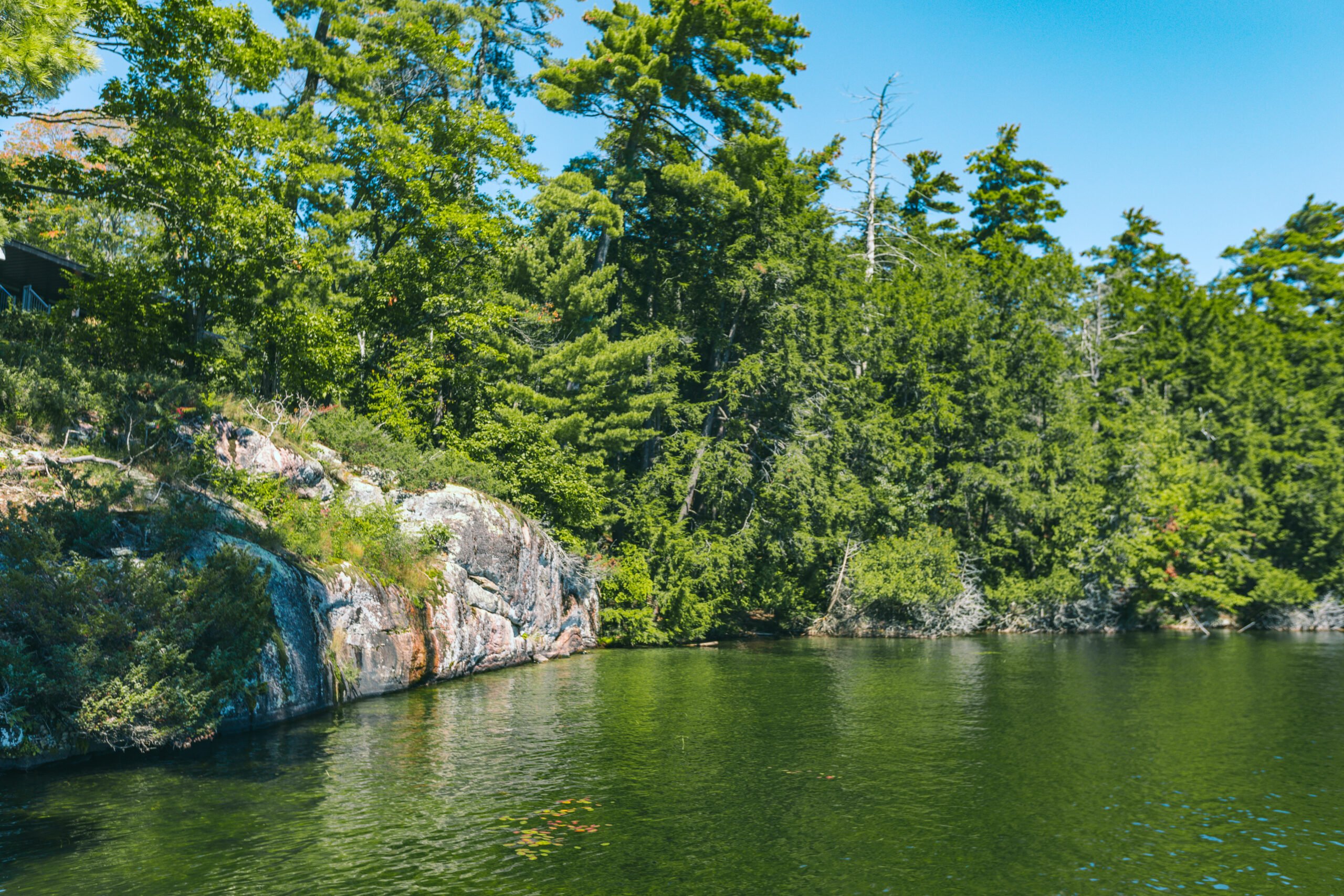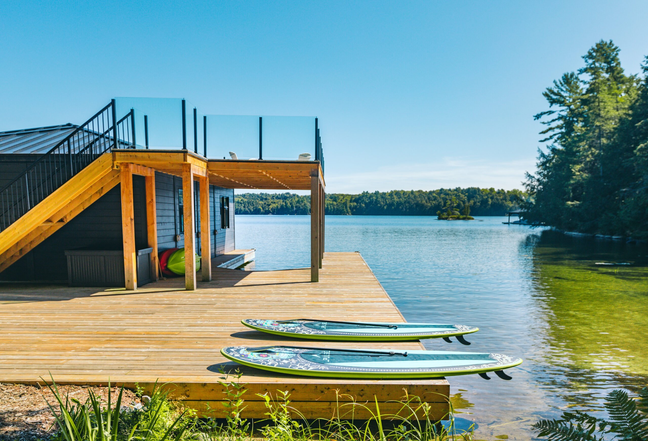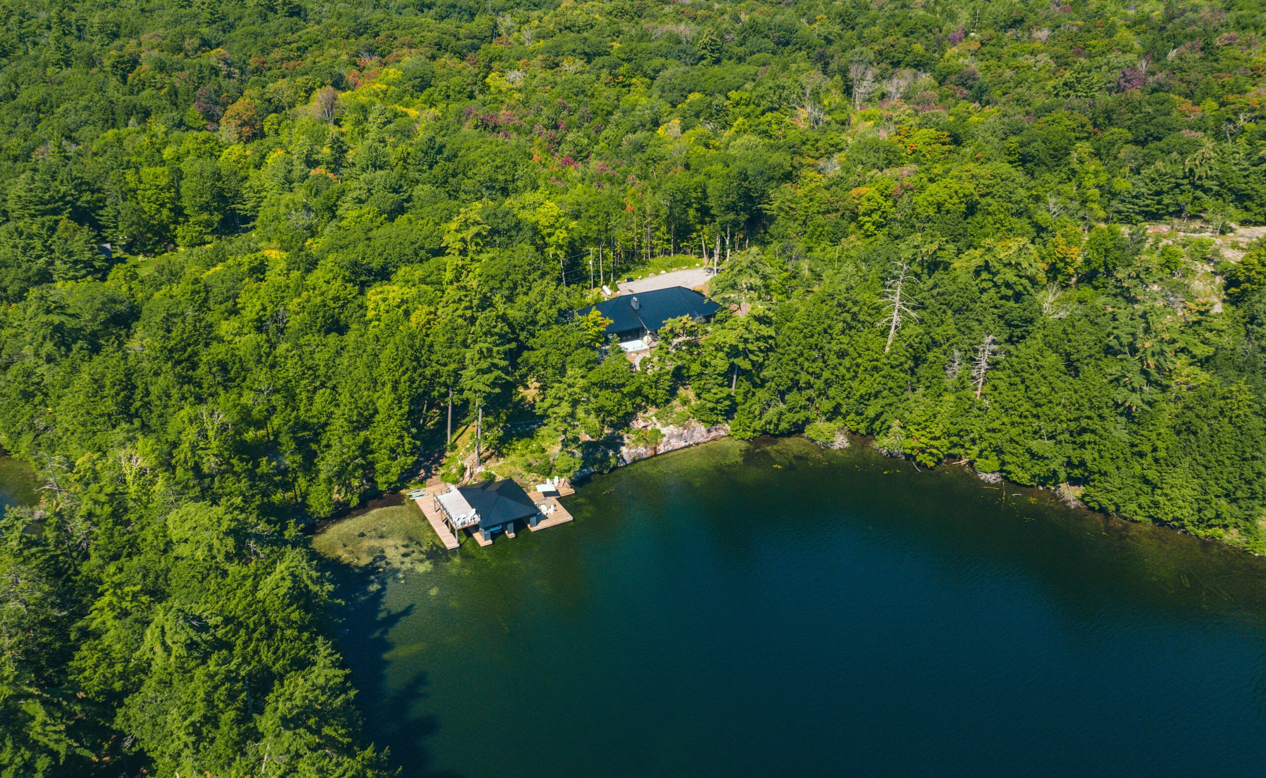 Located on central Lake Joseph in a secluded bay, this cottage boasts maximum privacy with over 300ft of privacy from neighbours on either side. Southern exposure with all day sun, deep divable water off the end of the sundeck and boathouse dock, a soft sandy beach, and a walkable entrance into the water on the side. The lake access truly has the best of both worlds with the gradual beach slope entry into the water as well as divable water
