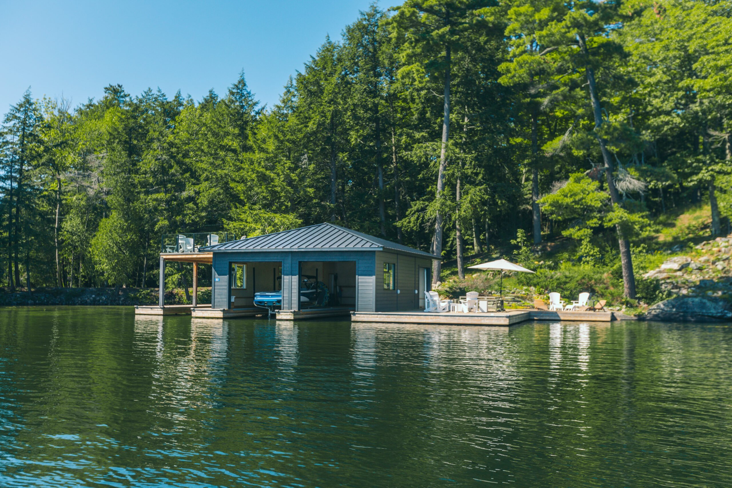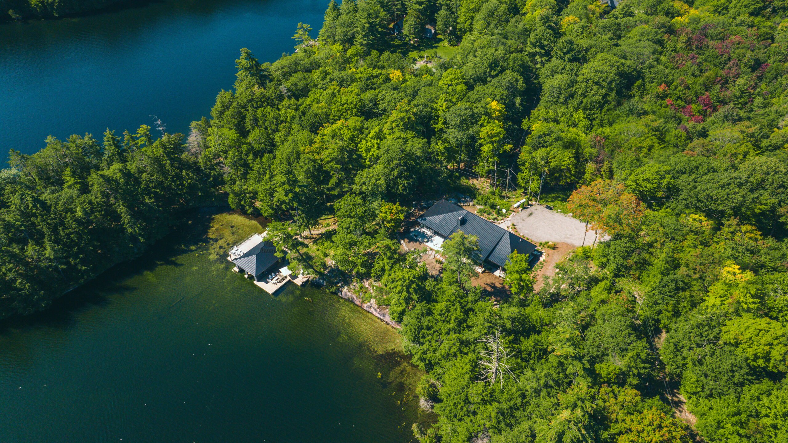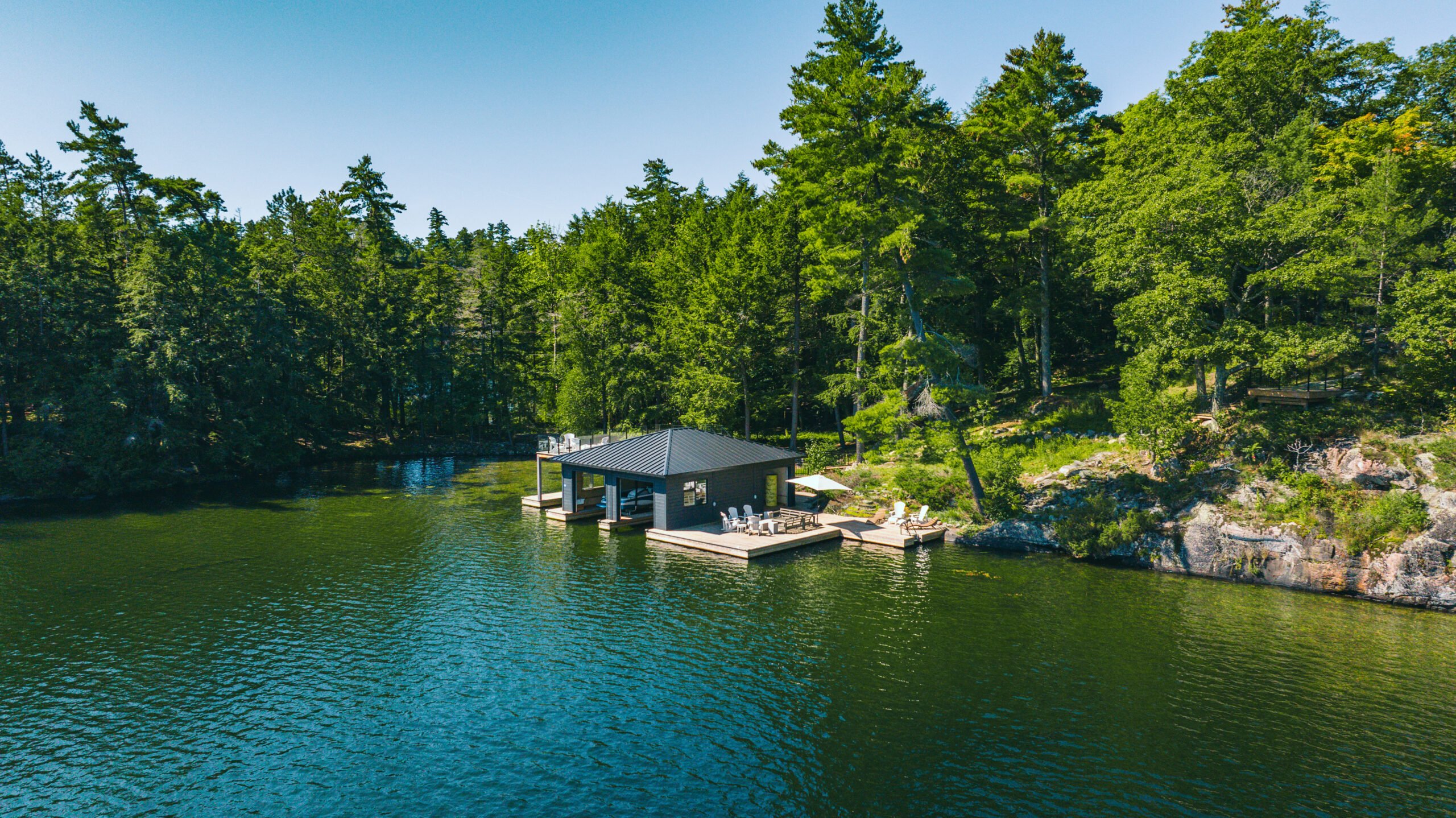 Boathouse, sun-deck, four-season property, indoor/outdoor fireplace, muskoka room