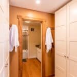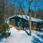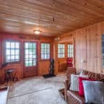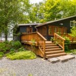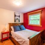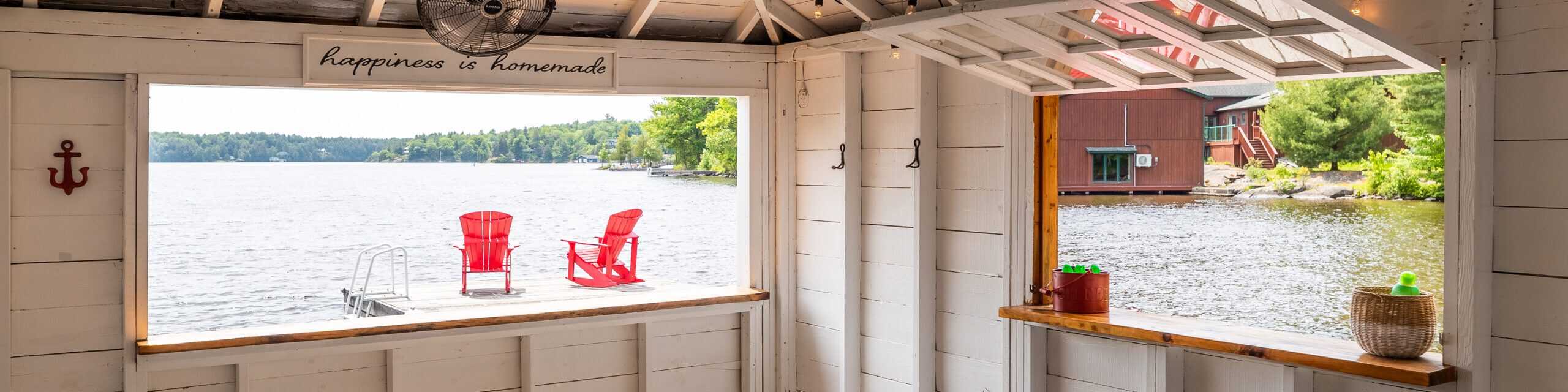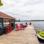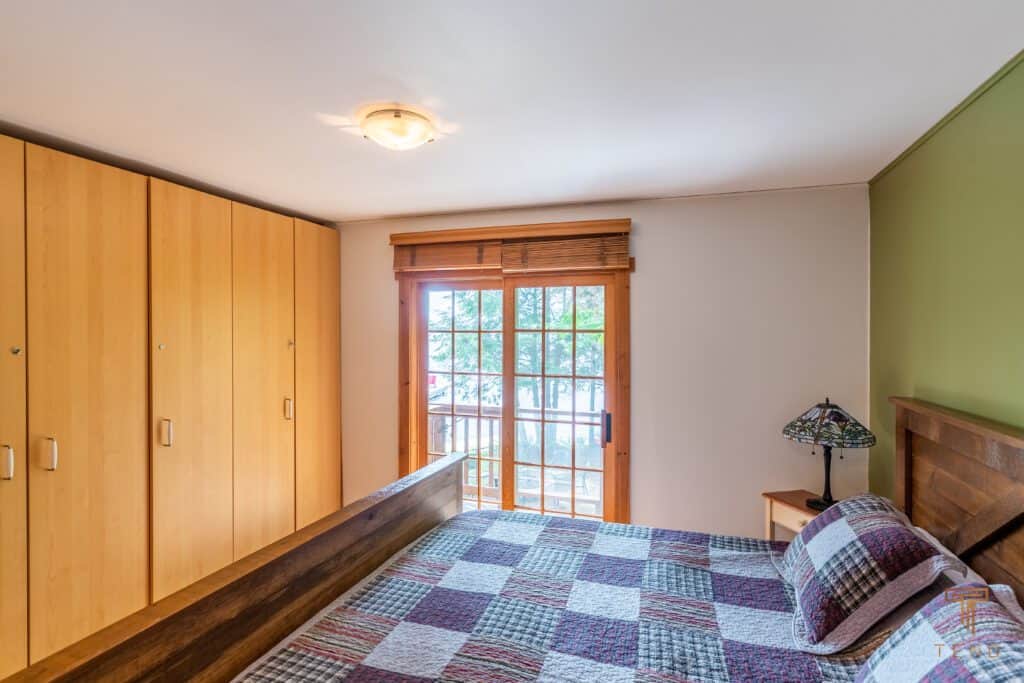 Upstairs, the master bedroom enjoys the same stunning lake views, and is strategically cornered for privacy. Ample closet room and en-suite bathroom enhance the master bedroom experience, as well as French doors opening to a step-out Juliet balcony for more exquisite lake gazing. Two more smaller bedrooms make up the upstairs living space, perfect for kids and suitable for adults. Just steps away from the main cottage, a charming bunkie to sleep one or two more.