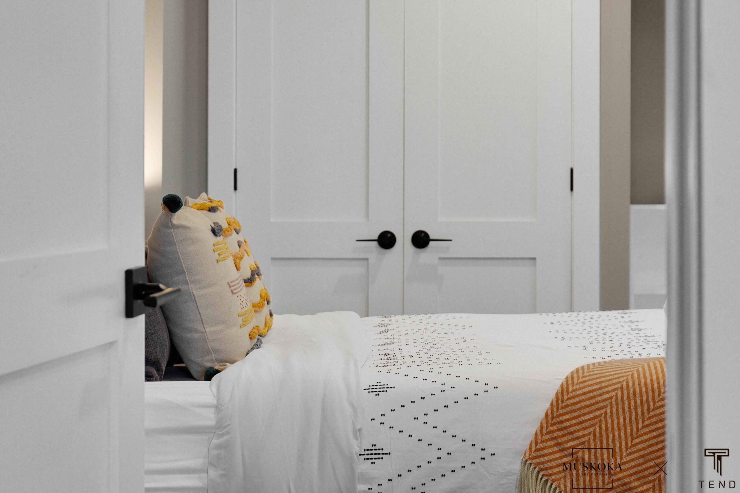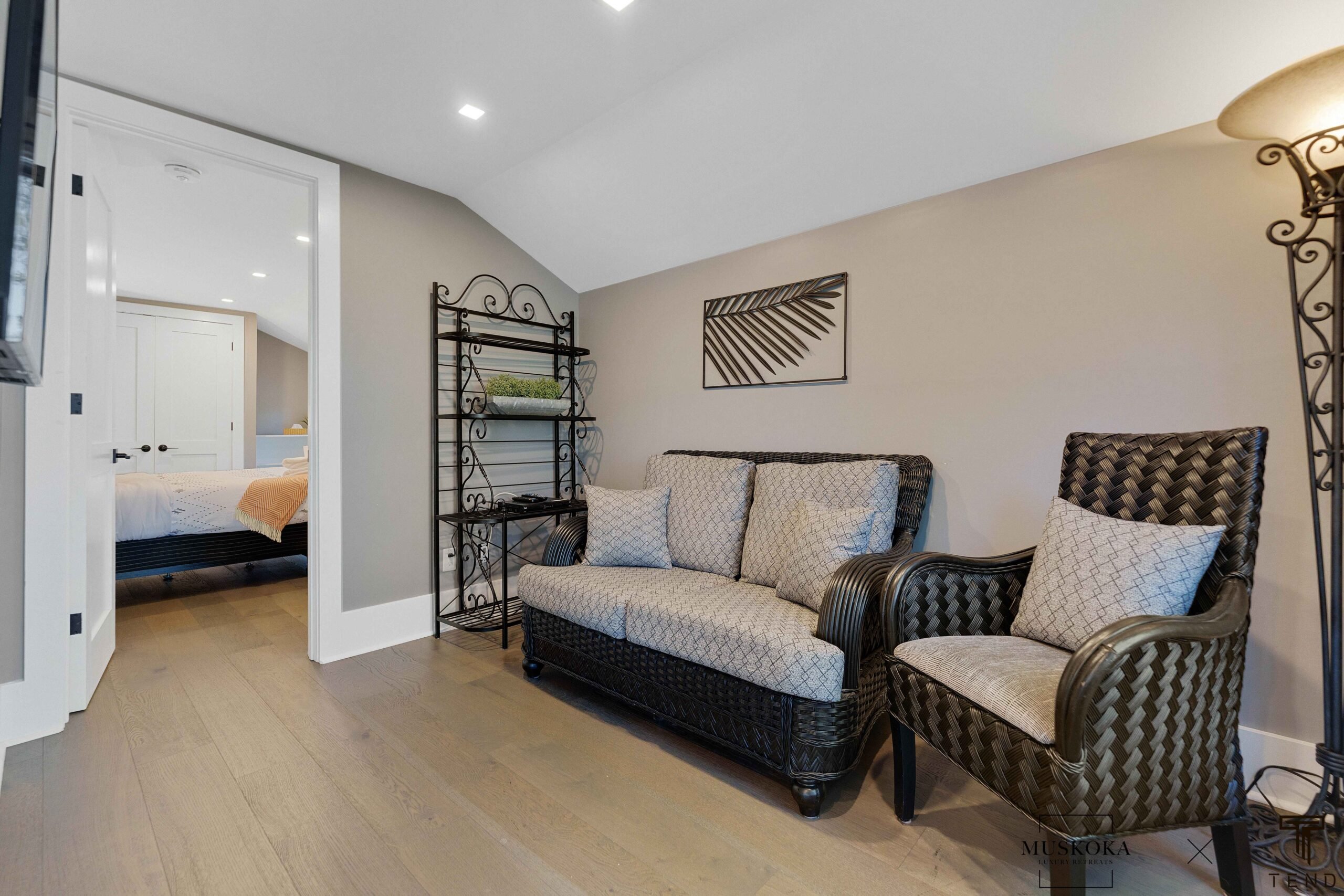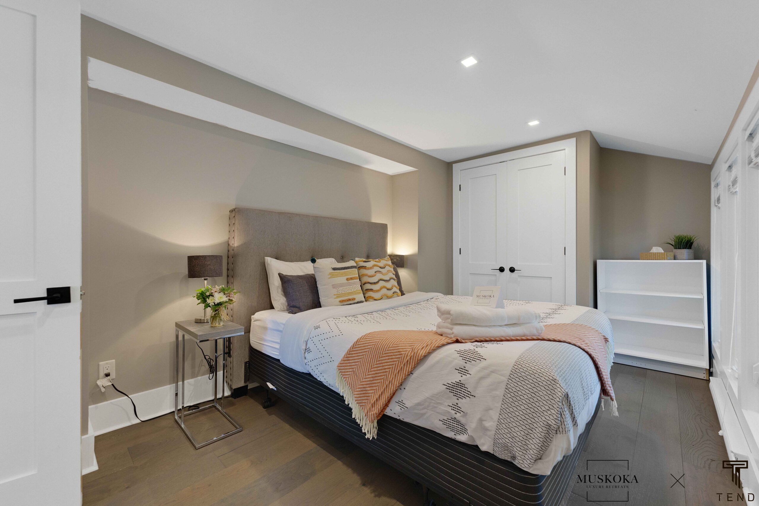 The bunkie is a separate building just a few steps from the main cottage. It features one bedroom and one bathroom, as well as French doors that open onto a deck overlooking the lake. The bunkie is beautifully decorated and provides a private and cozy space for guests who prefer a bit more privacy.